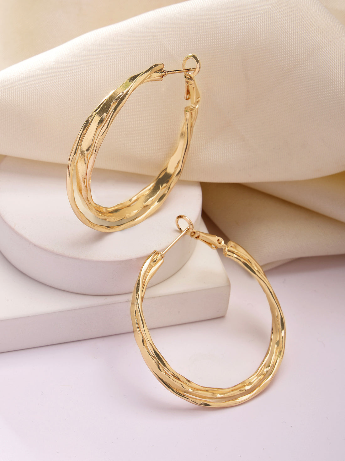 Bohey by KARATCART Gold Plated Contemporary Multi-Layer Hoop Earrings