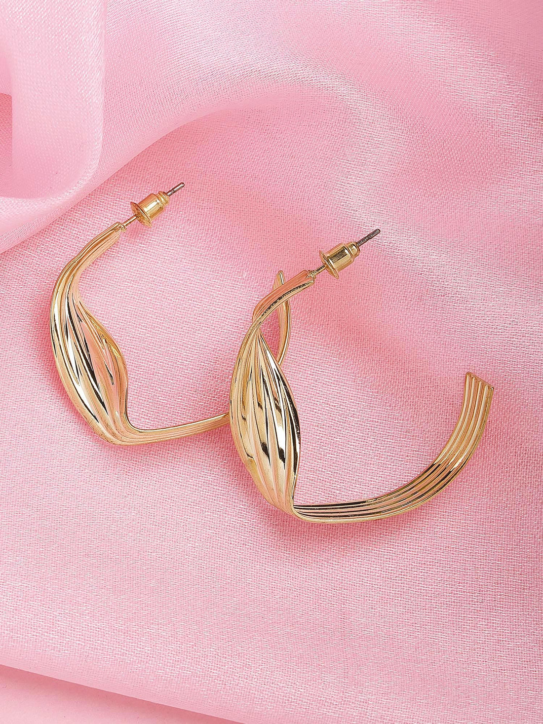 Bohey by KARATCART Gold Plated Twisted Contemporary Half Hoop Earrings for Women
