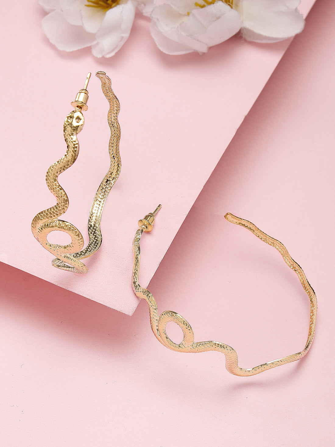 Bohey by KARATCART Gold Plated Snake Design Half Hoop Earrings for Women