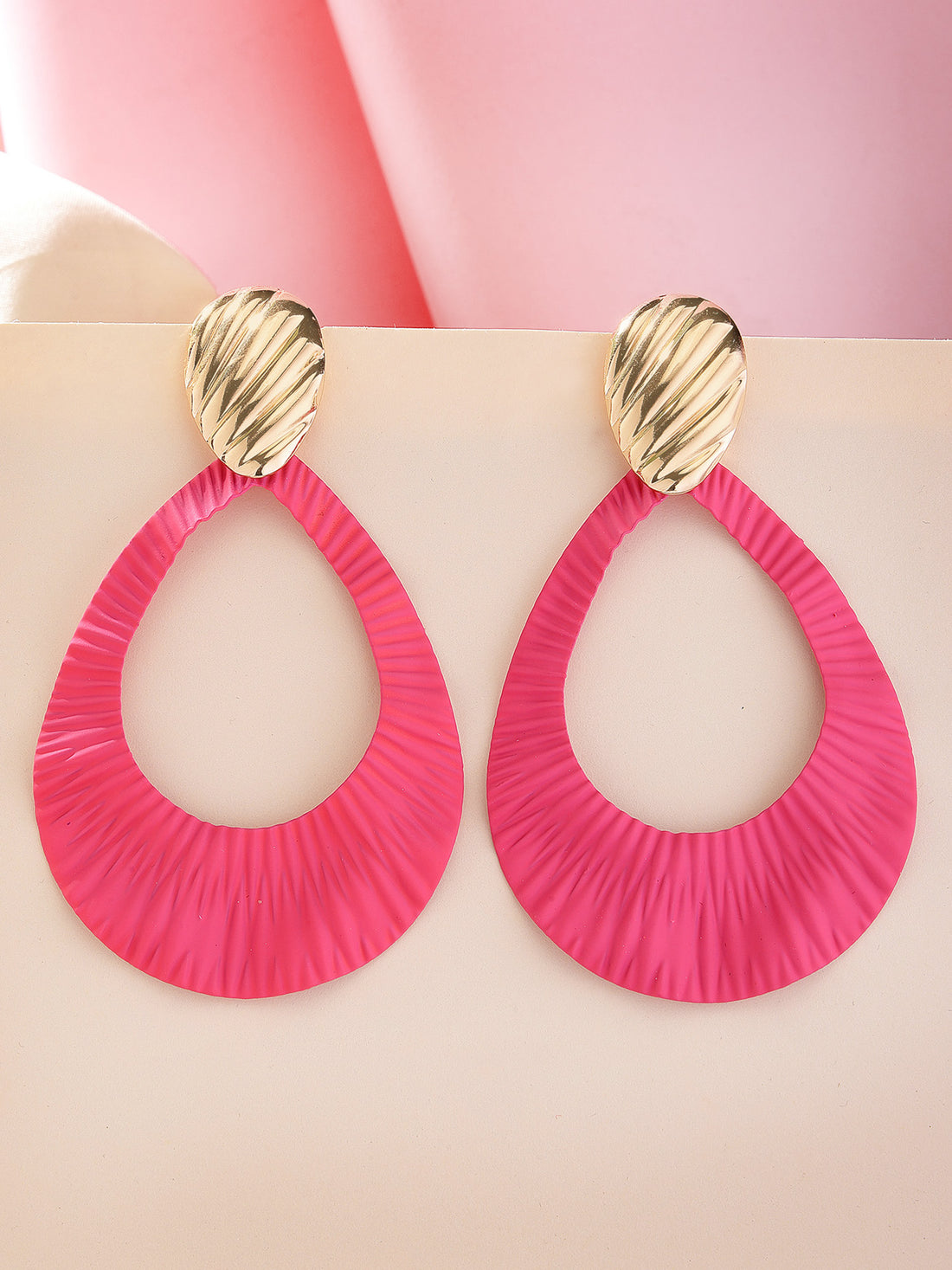 Bohey by KARATCART Pink Textured Contemporary Drop Shape Earrings for Women
