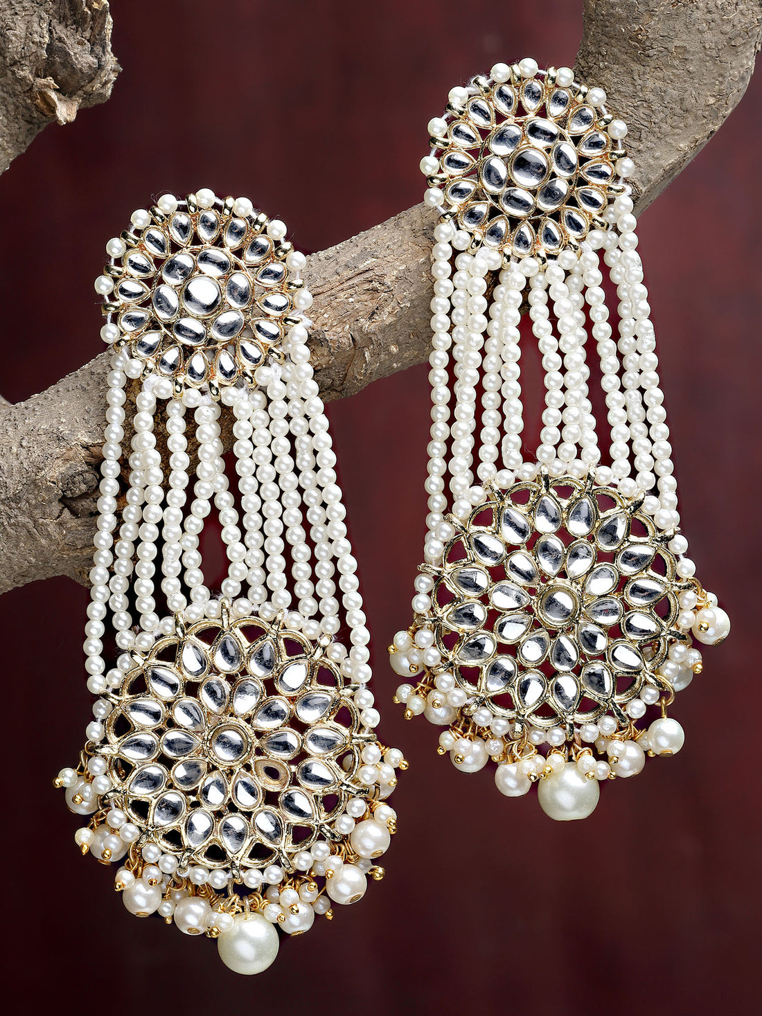 Karatcart Gold Plated Pearl Beaded Kundan Dangler Earrings for Women