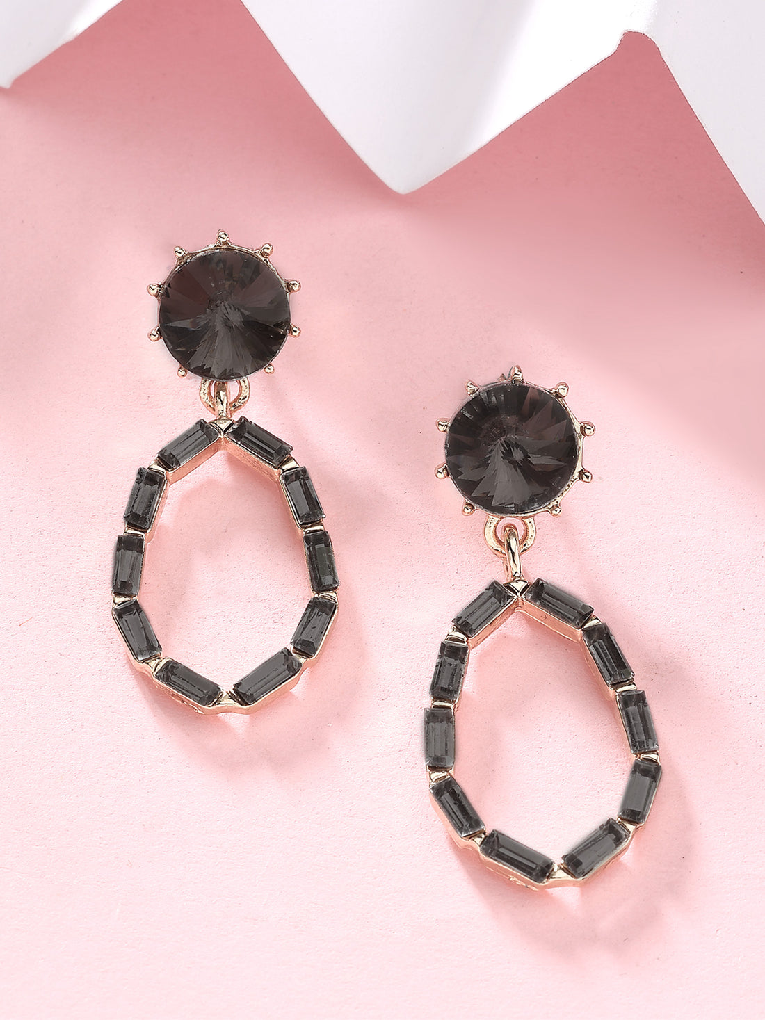 Bohey by KARATCART Gold-Plated Contemporary Grey Drop Earrings for Women