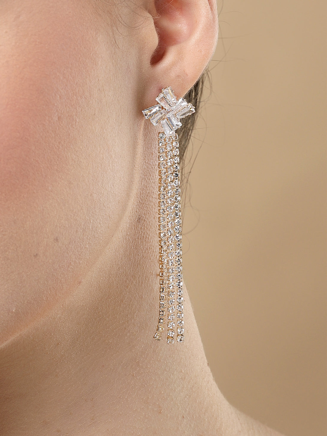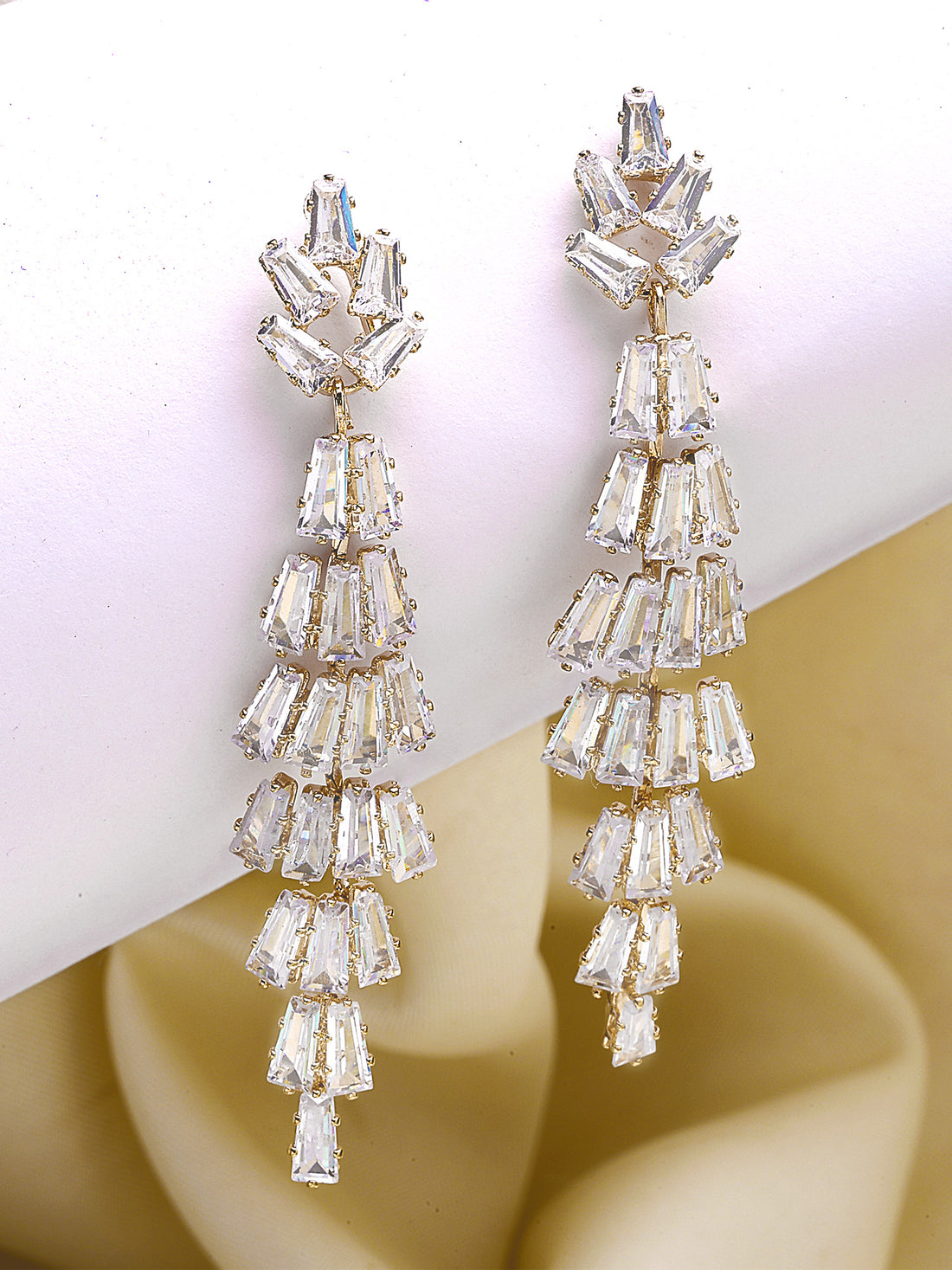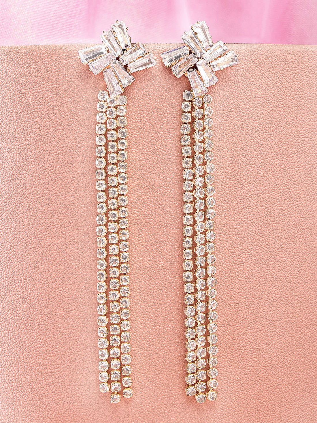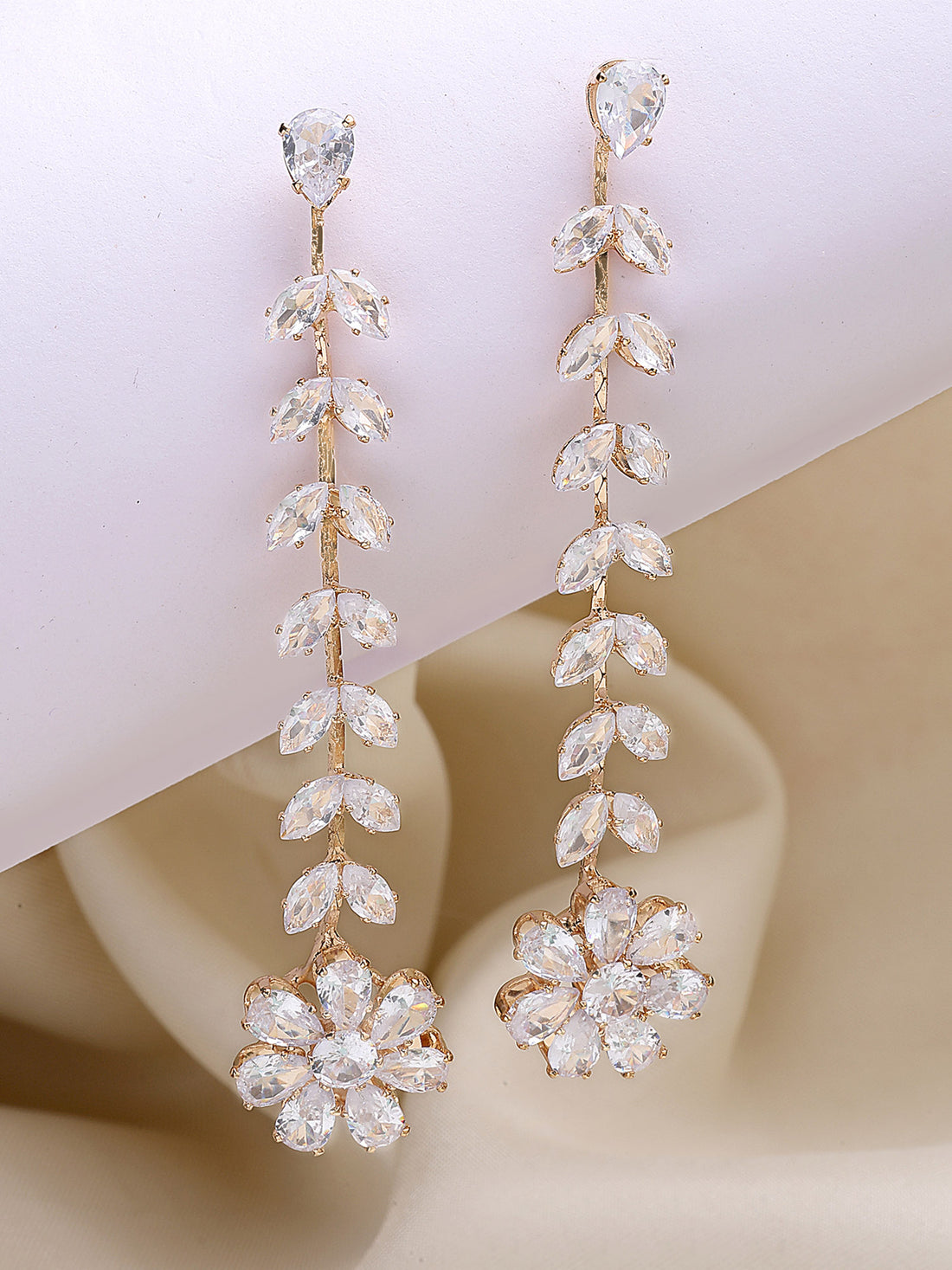 Bohey by KARATCART Gold Plated Cubic Zirconia Long Drop Earrings
