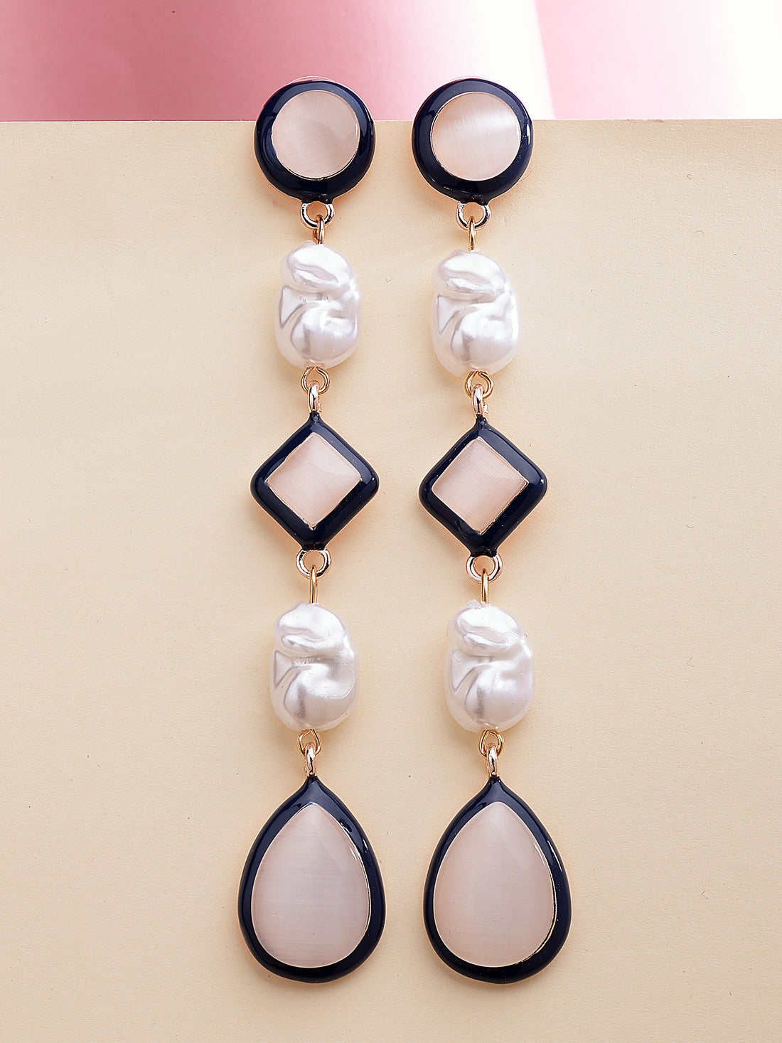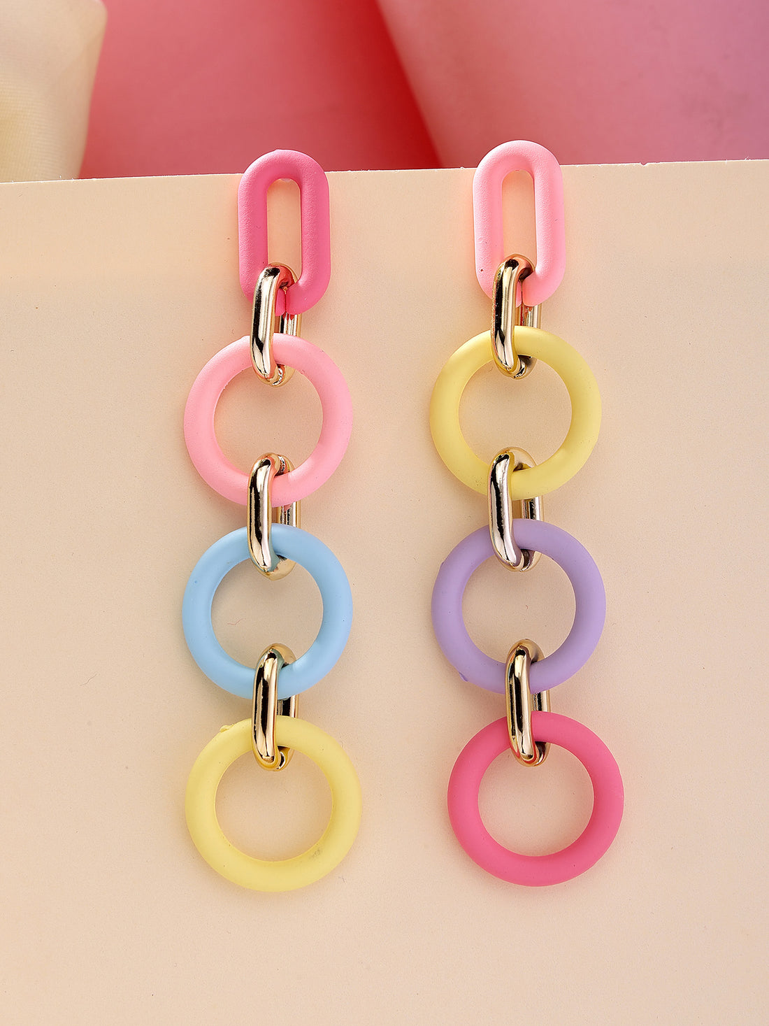 Bohey by KARATCART Baby Pink Matte Finish Link Dangler Earrings for Women