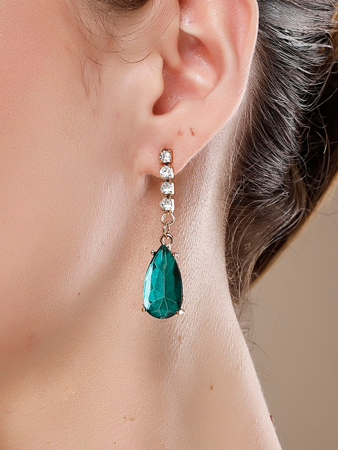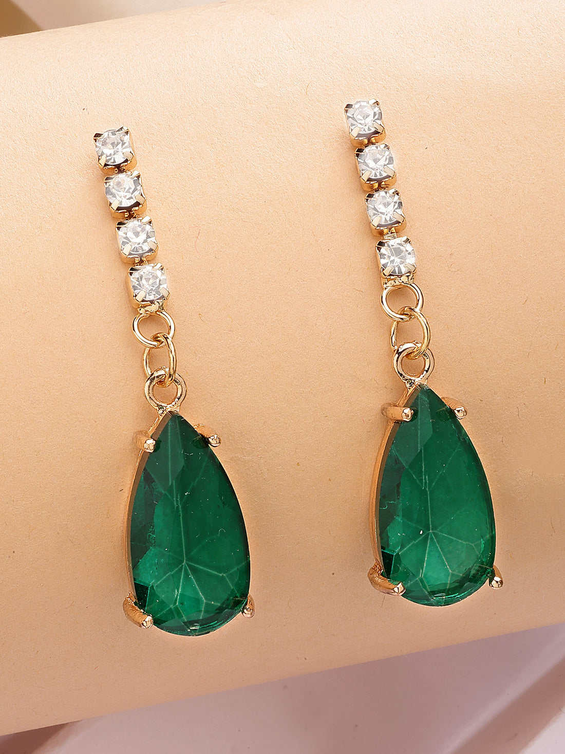 Bohey by KARATCART Gold-Plated Green Cubic Zirconia Studded Drop Earrings for Women