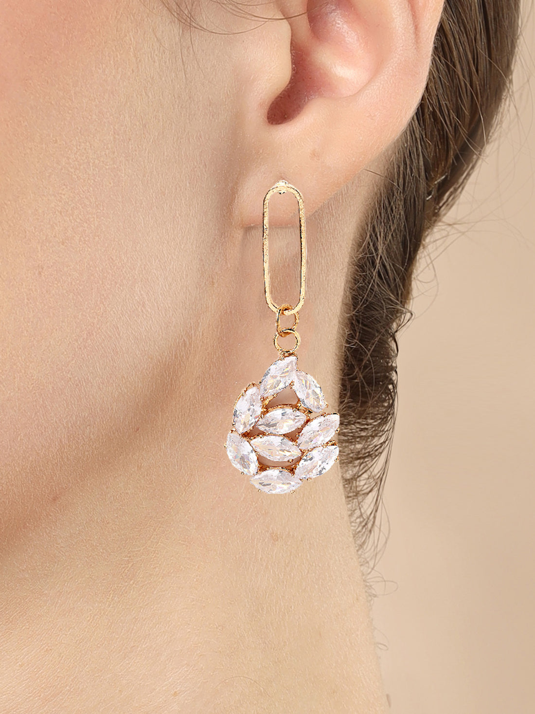Bohey by KARATCART Gold Plated Cubic Zirconia Drop Earrings for Women