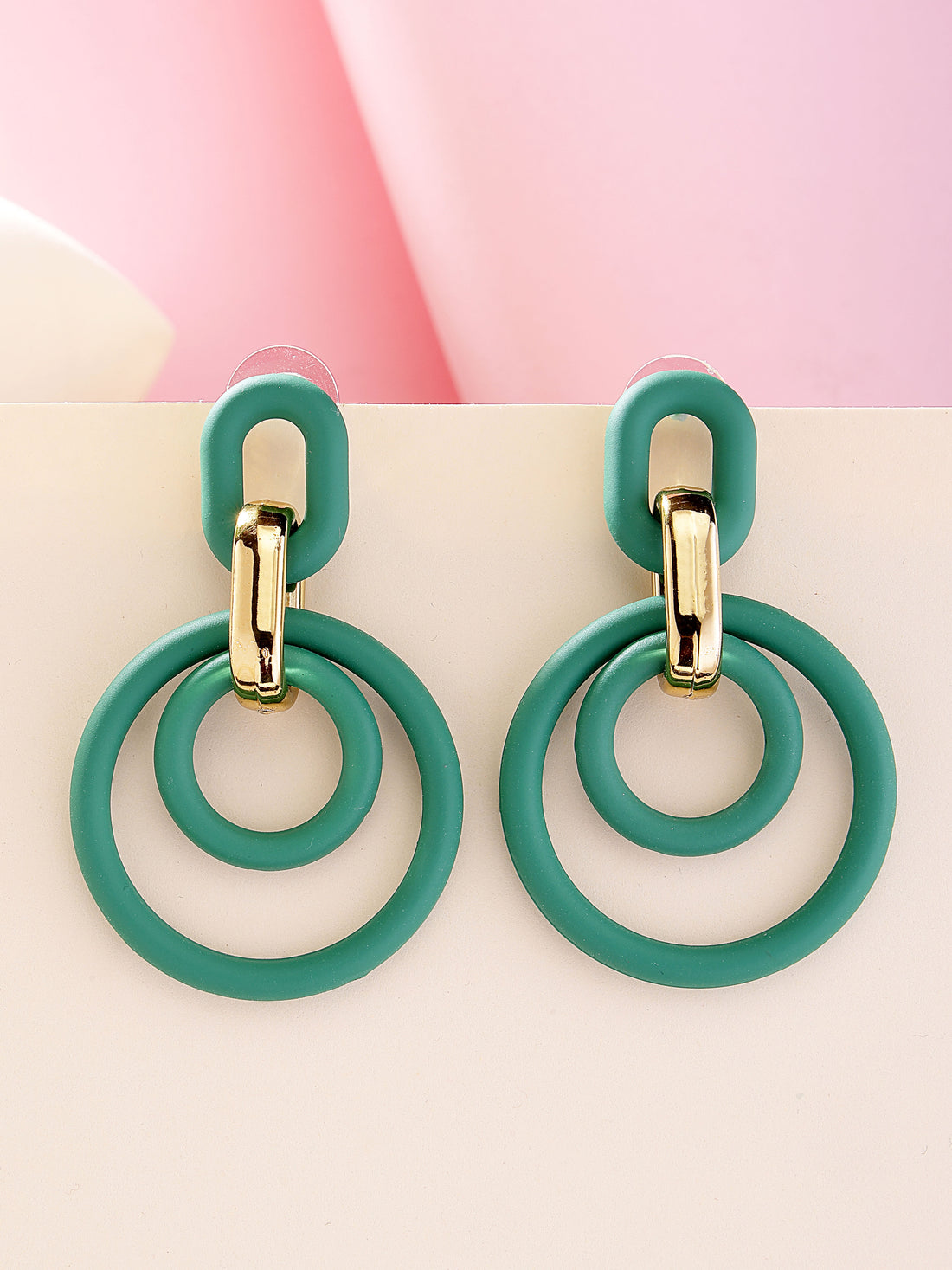 Bohey by KARATCART Green Matte Finish Link Dangler Earrings for Women