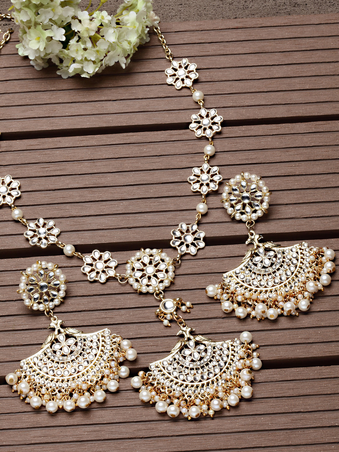 Karatcart Gold Plated Floral Kundan Sheeshphool with Chnadbali Earrings for Women