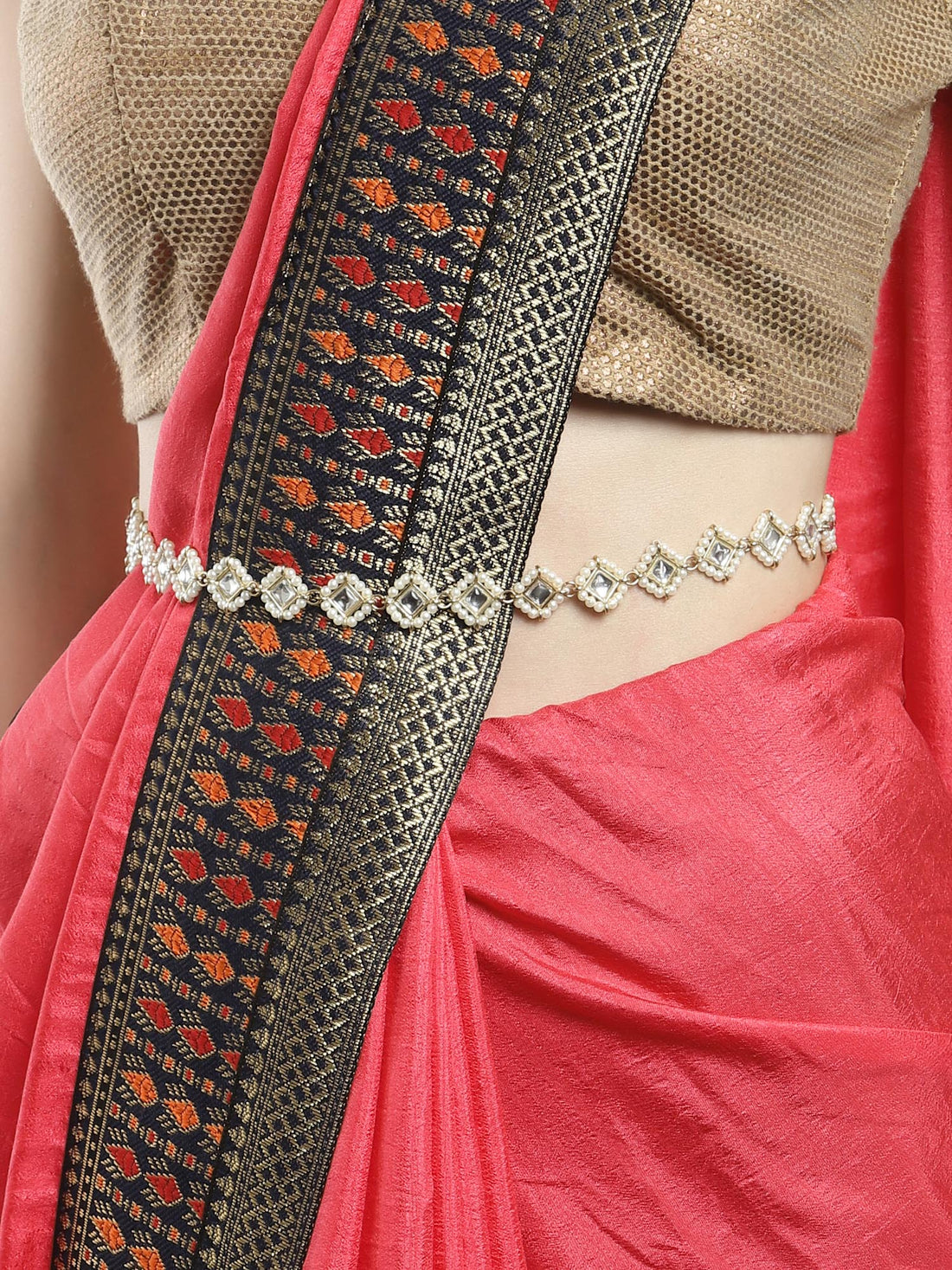 Karatcart Oxidised Silver Floral Shape Kundan and Pearl Beaded Kamarbandh