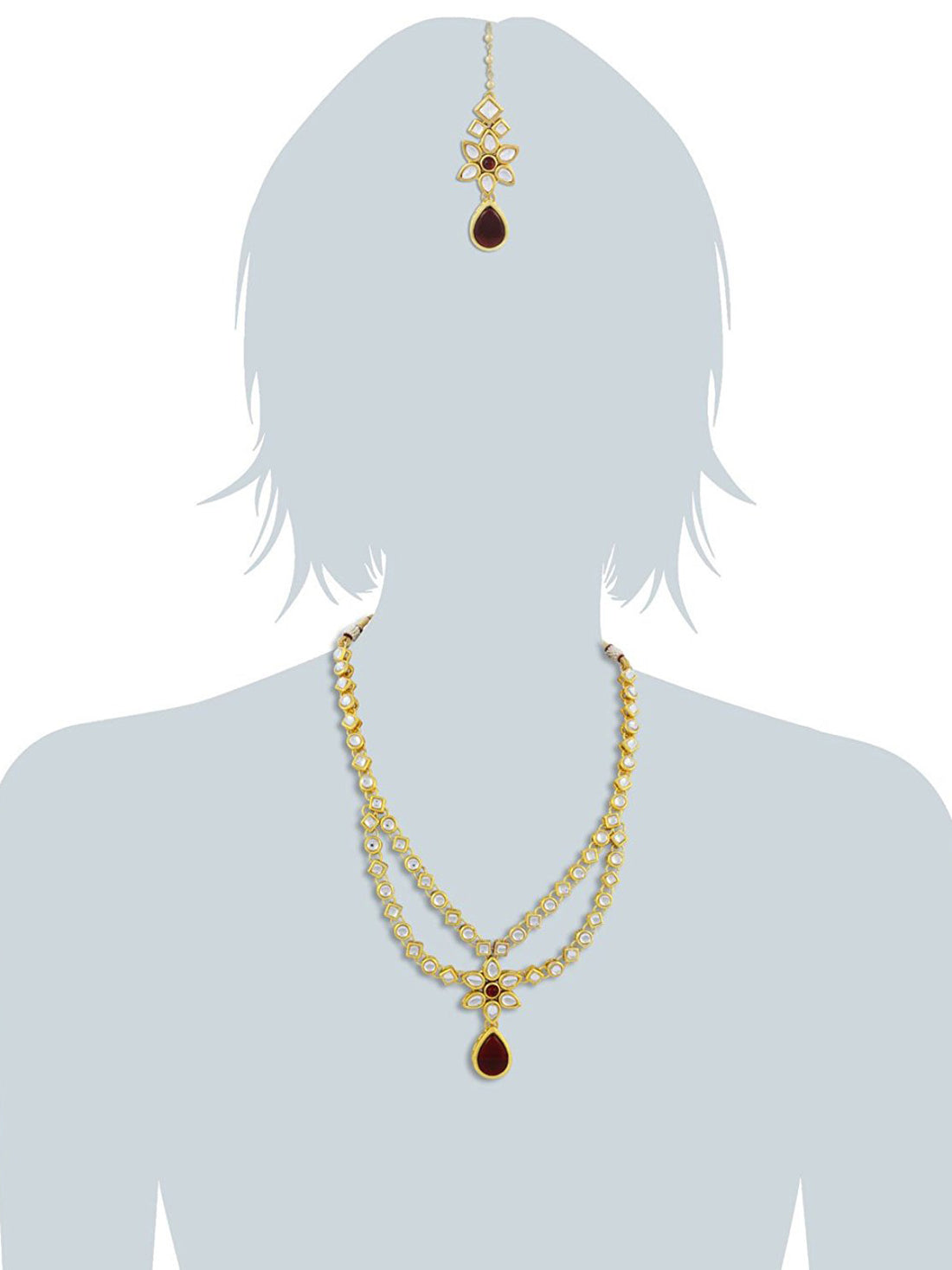 Kundan Layered Red Drop Ethnic Necklace set For Women