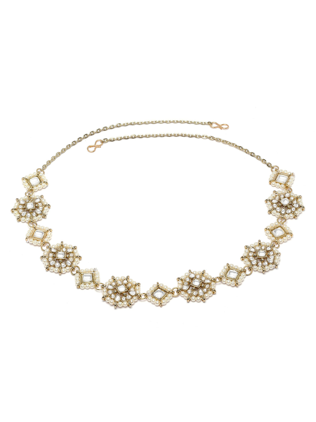 Karatcart Ethnic Gold Plated Kundan Pearl Beaded Kamarbandh for Women