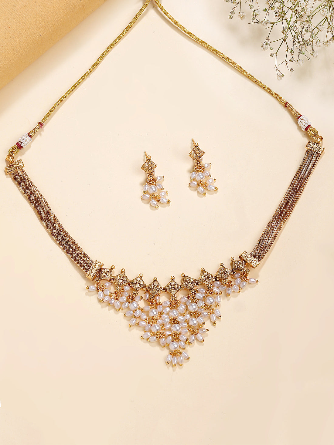 KARATCART Traditional South Indian Gold Plated Pearl Beaded Temple Jewellery Set for Women