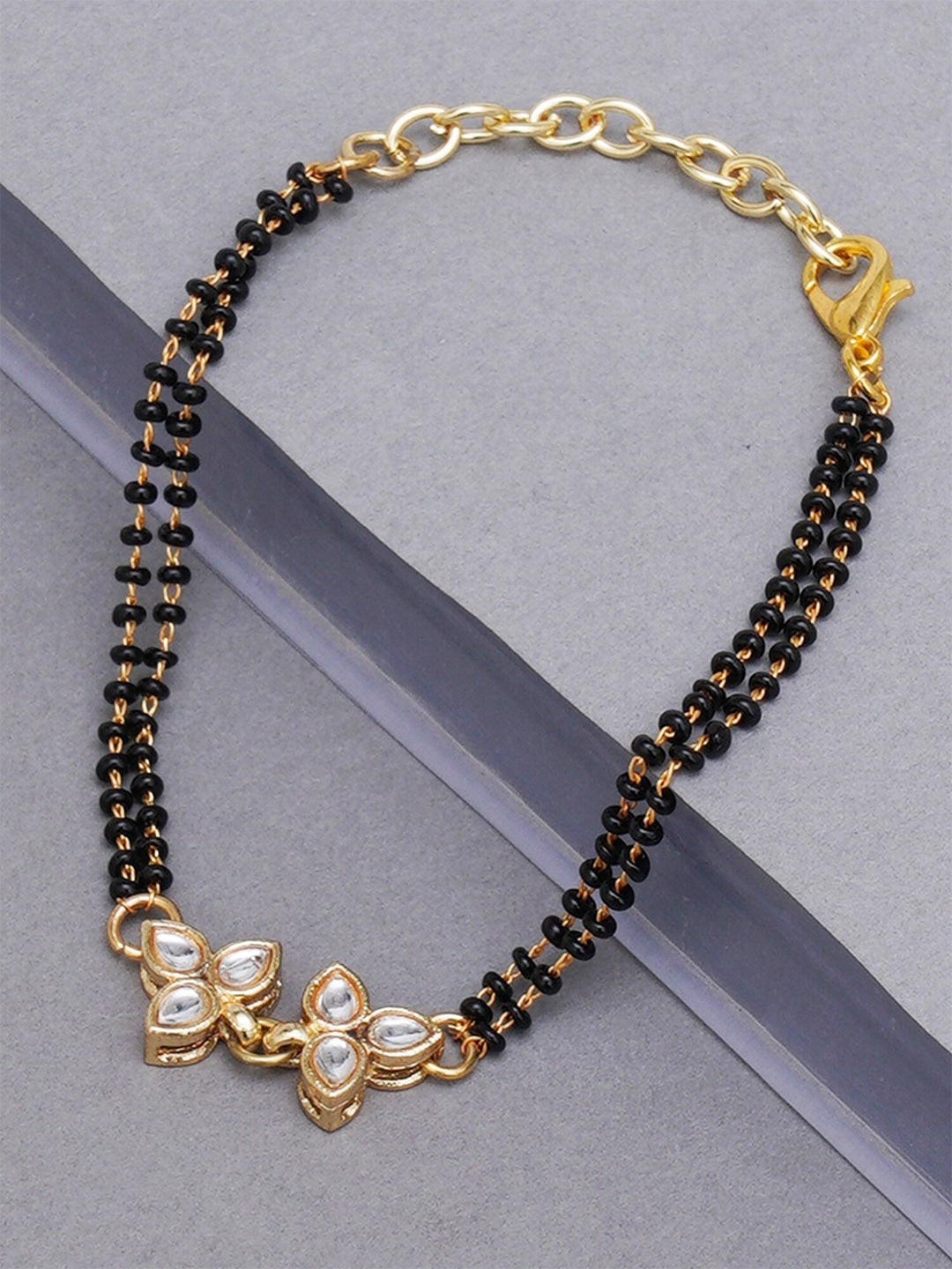 Women Gold-Plated & Black Kundan Adjustable Charm Mangalsutra Bracelet