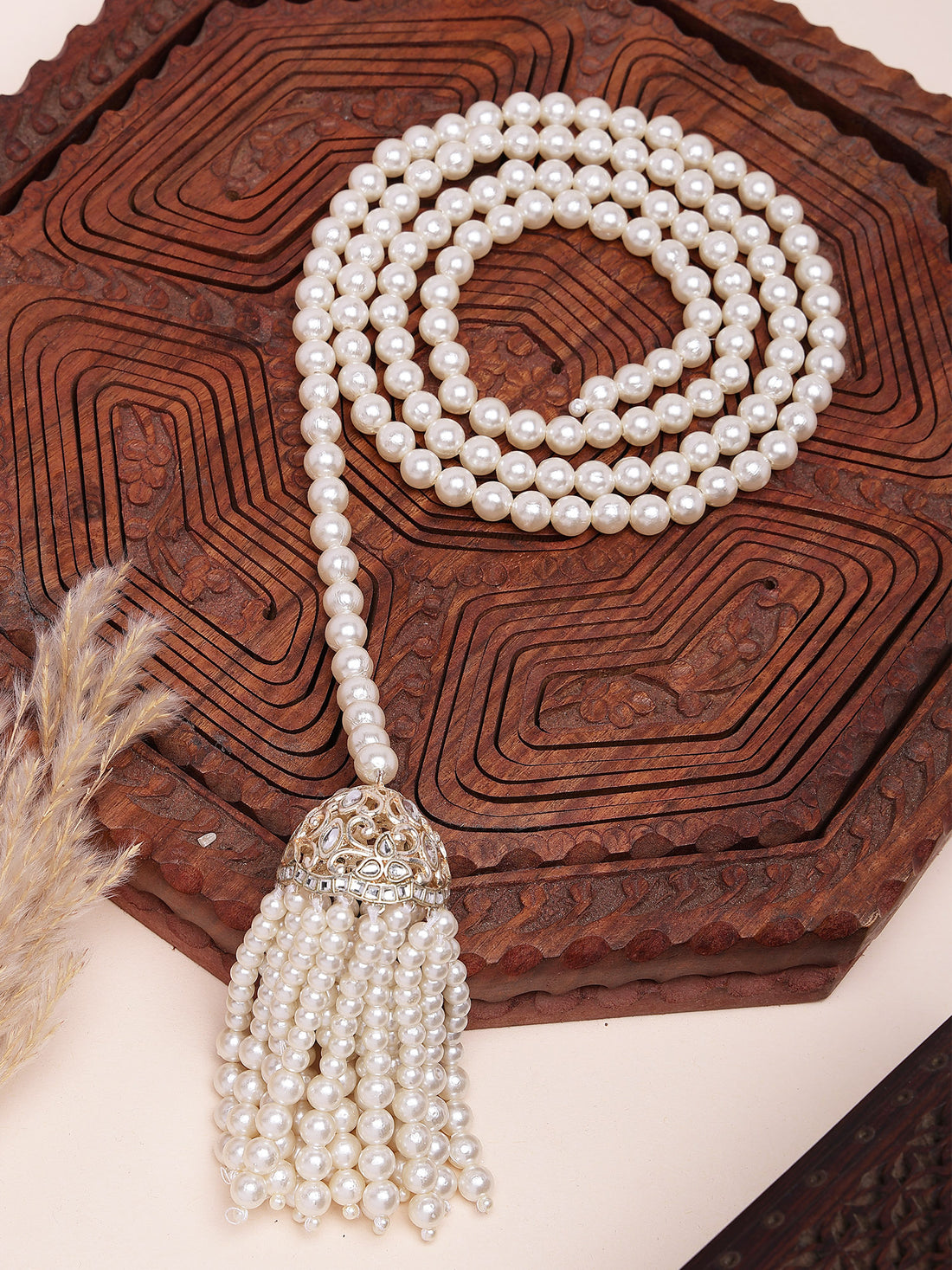 Karatcart 22K GoldPlated Kundan Layered White Pearl Rani Haar Necklace Set