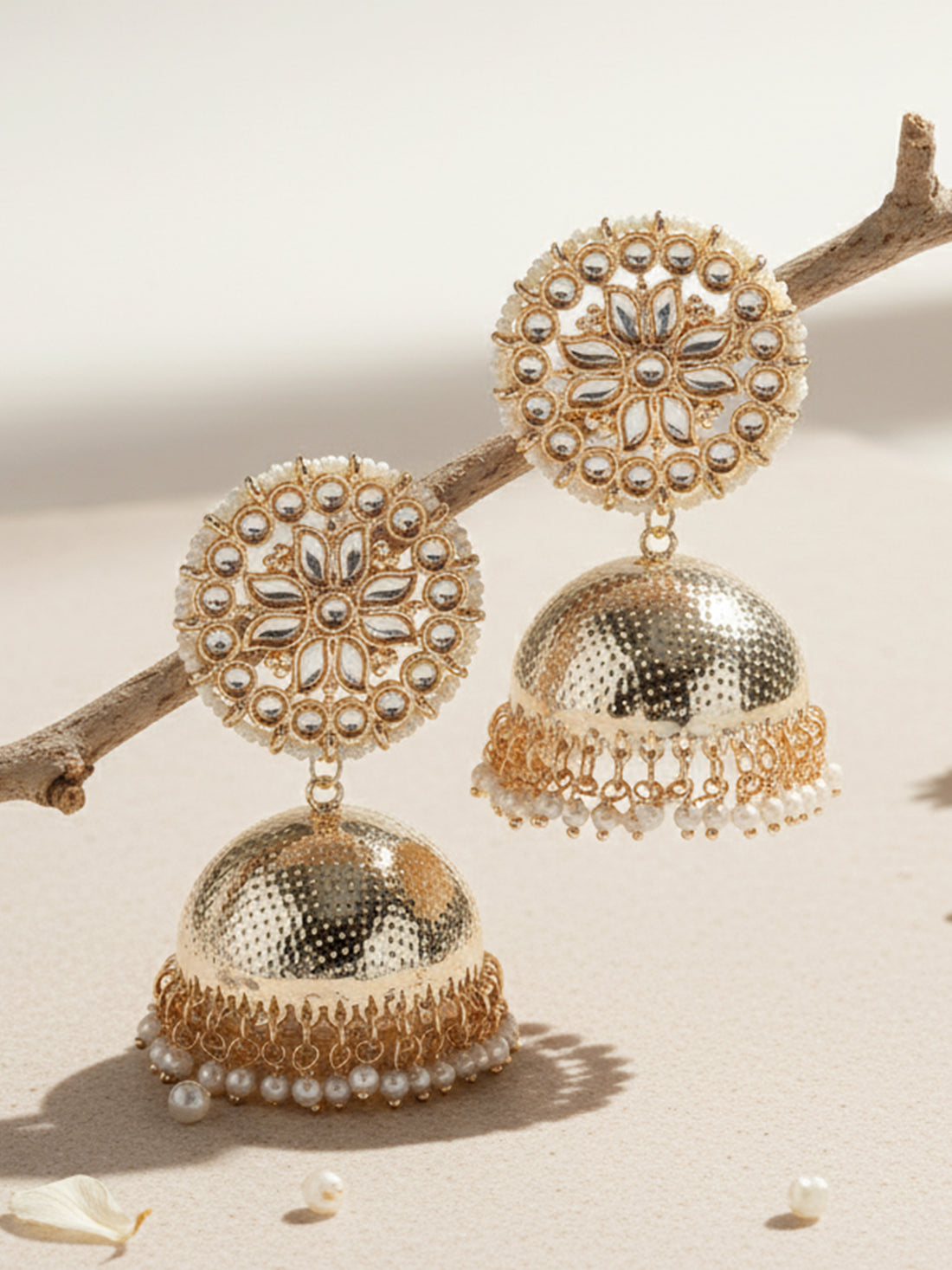 Karatcart Gold Plated Pearl and Kundan Studded Jhumki Earrings for Women