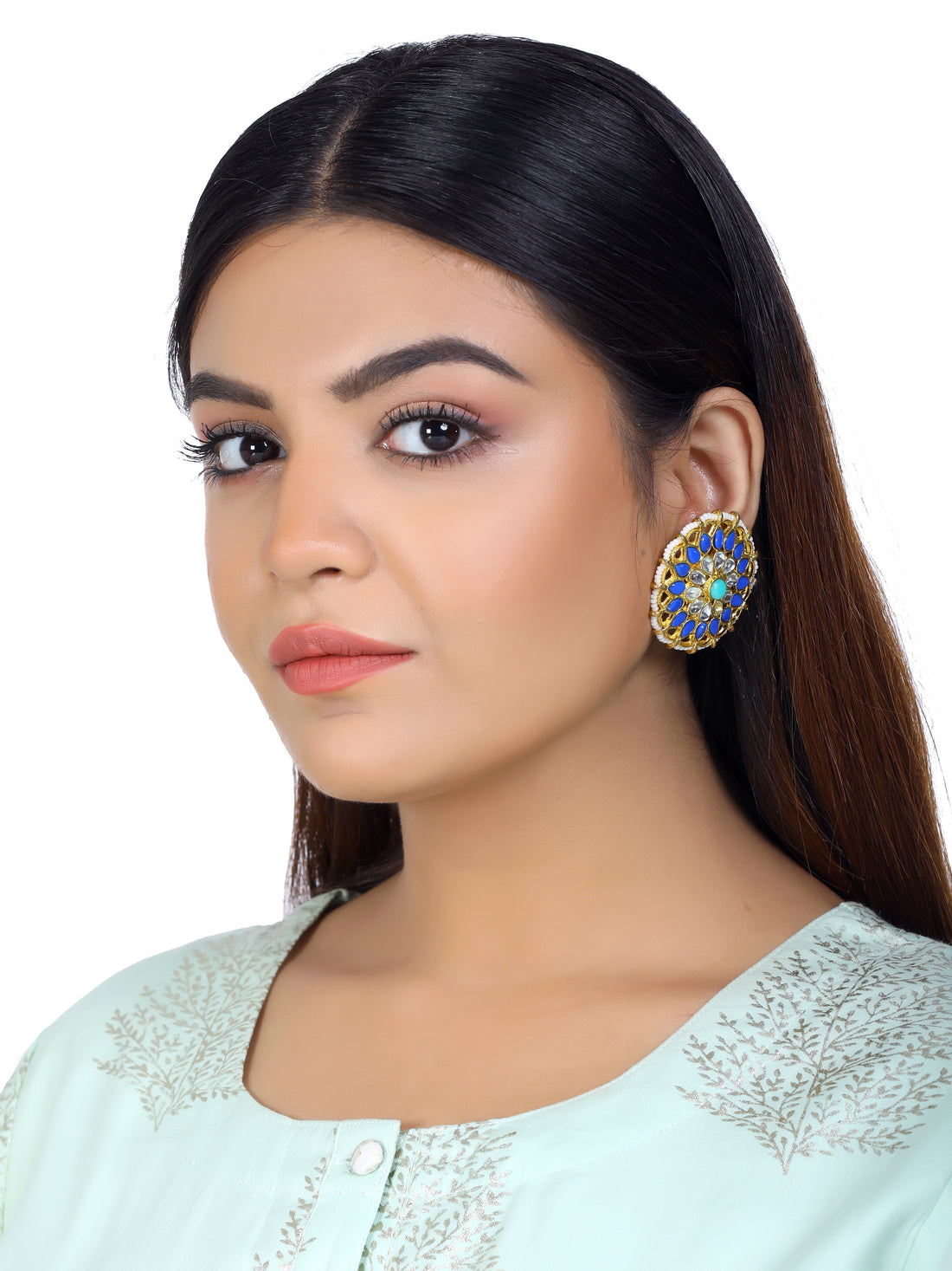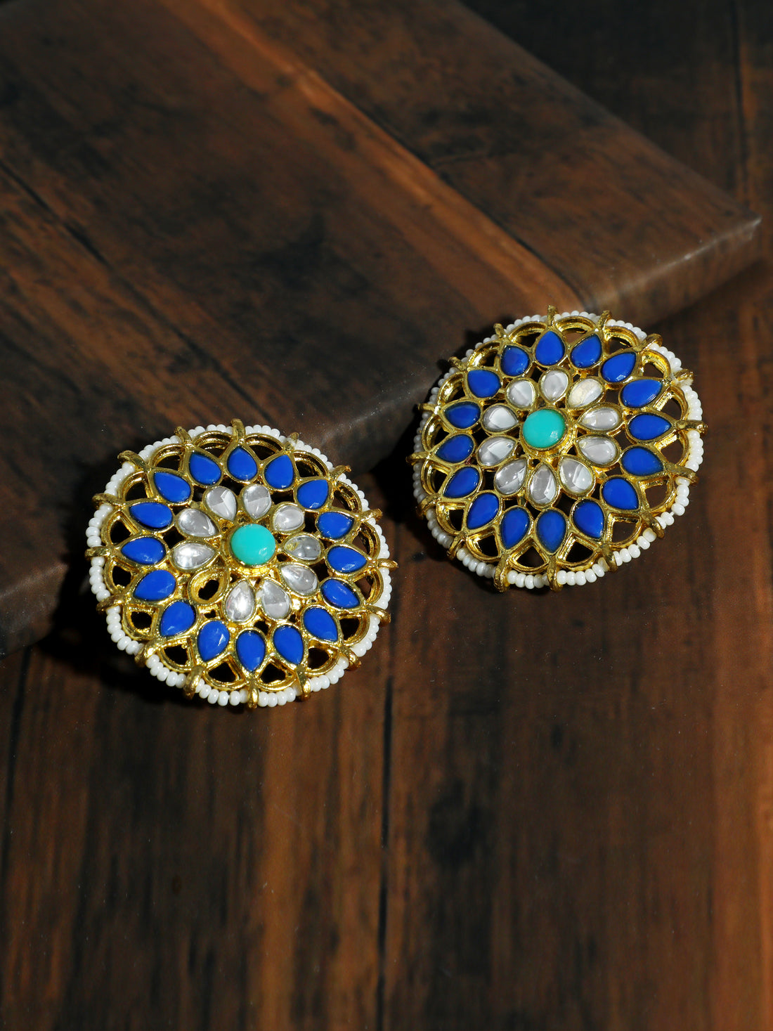 Gold Tone Faux Kundan Blue Drops Earrings. This set of earrings can be best paired...