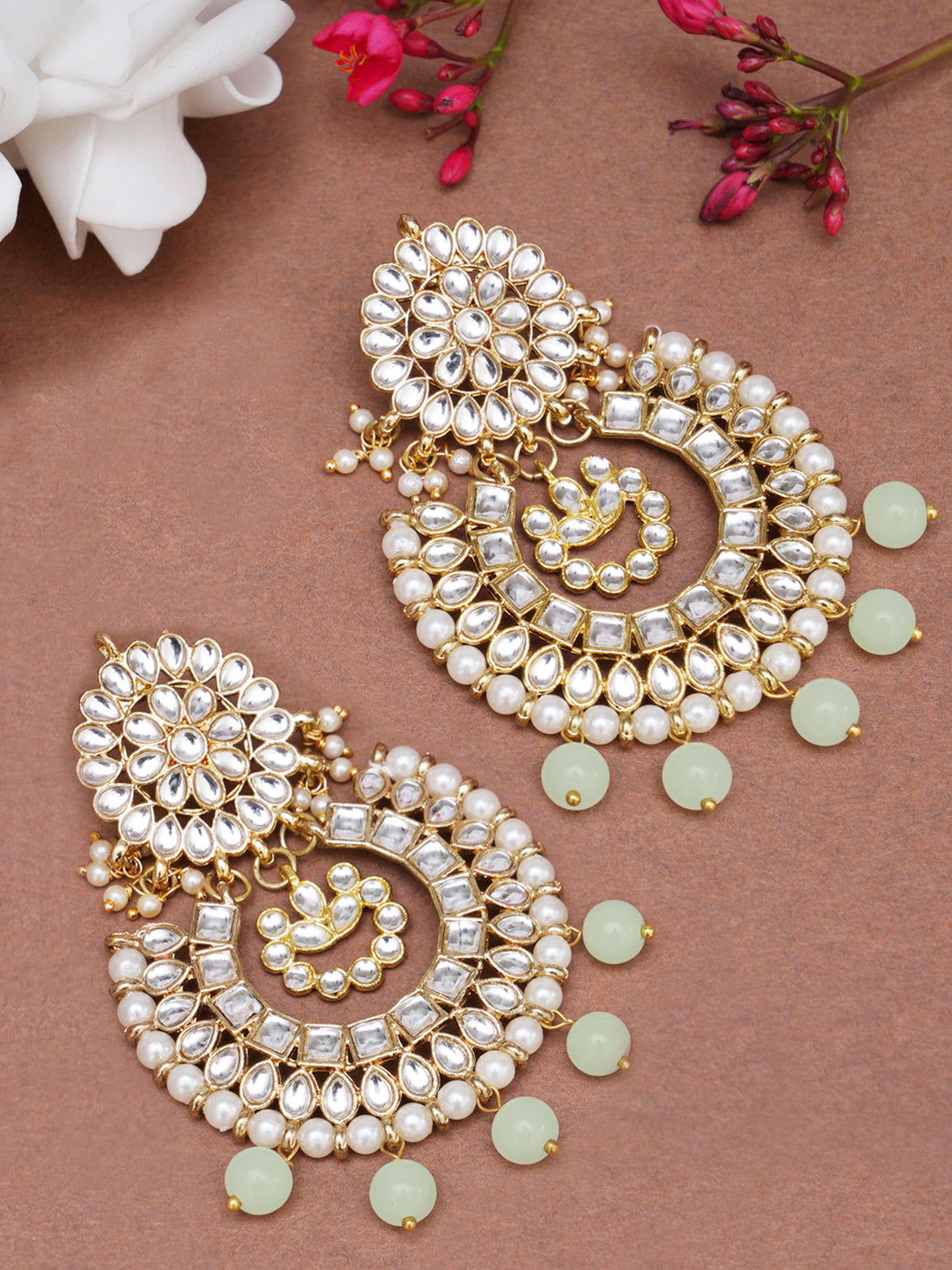 Gold Plated Light Green Drop Kundan Chandbali Earrings