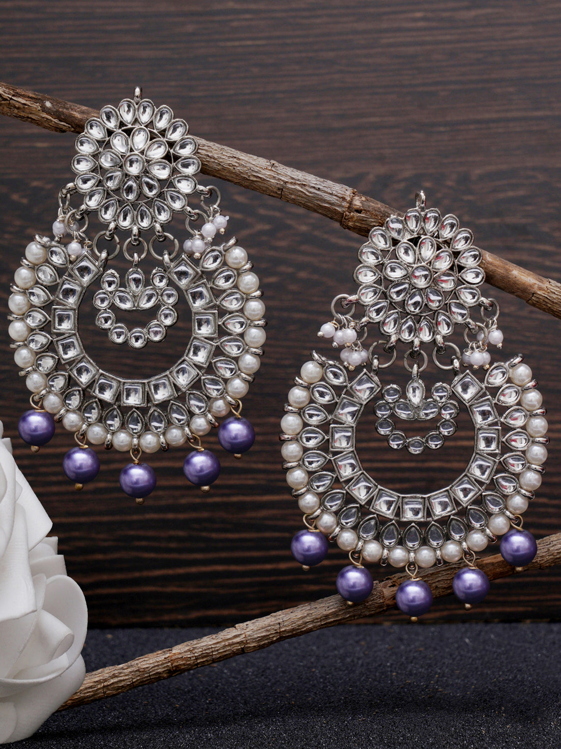 Karatcart Violet Pearl Oxidised Silver Kundan Chandbali Earrings. Made of High-Quality Metal Alloy as per...