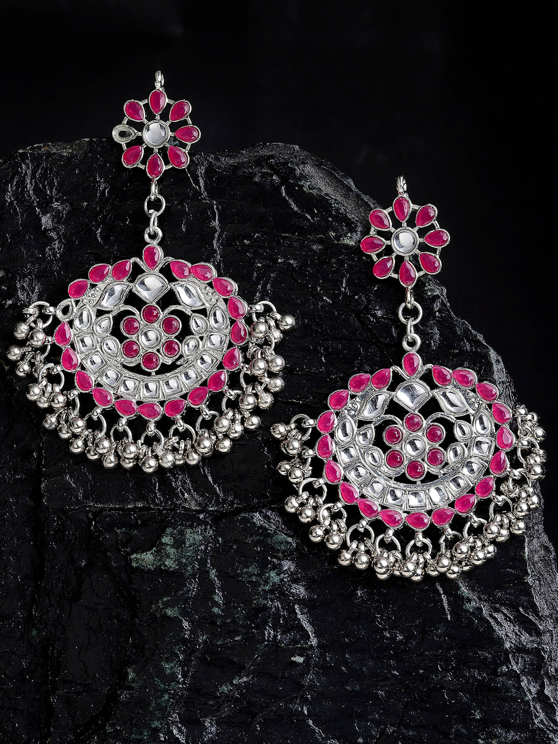 Antique Ruby Red Kundan Studded Oxidised Silver Handcrafted Chandbali Earrings