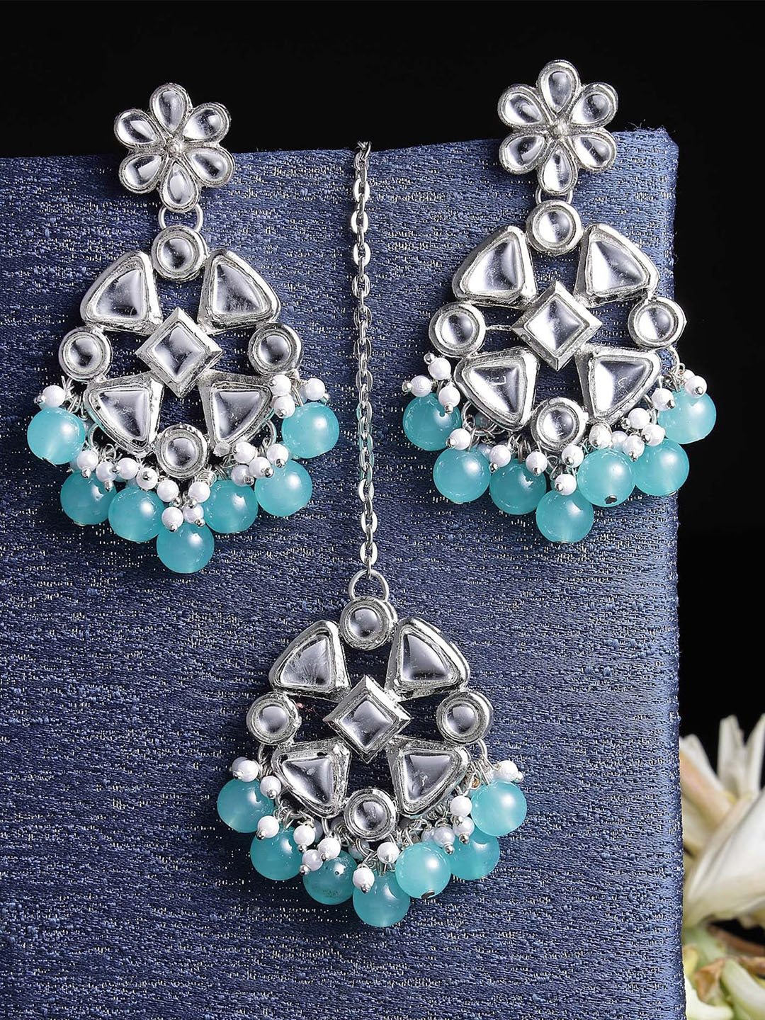 PRODUCT DETAILS This jewellery set consists of a maang tikka and a pair of earringsSilver-plated...