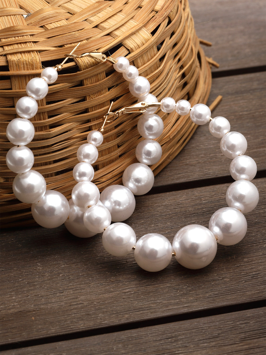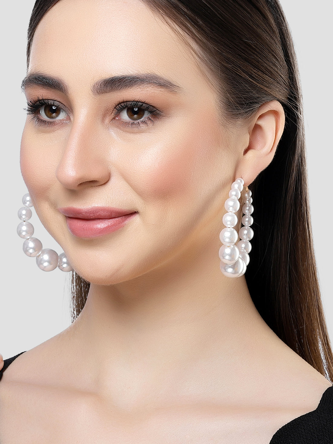 Bohey by KARATCART White Pearl Hoop Earrings for Women
