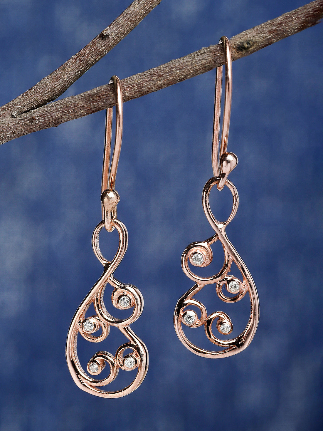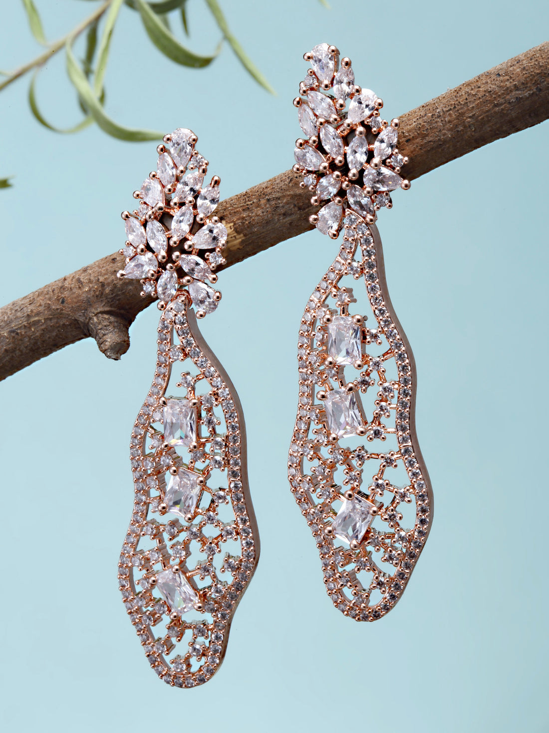 KUNUZ Rose Gold Plated Cubic Zirconia Studded 925 Sterling Silver Drop Earrings