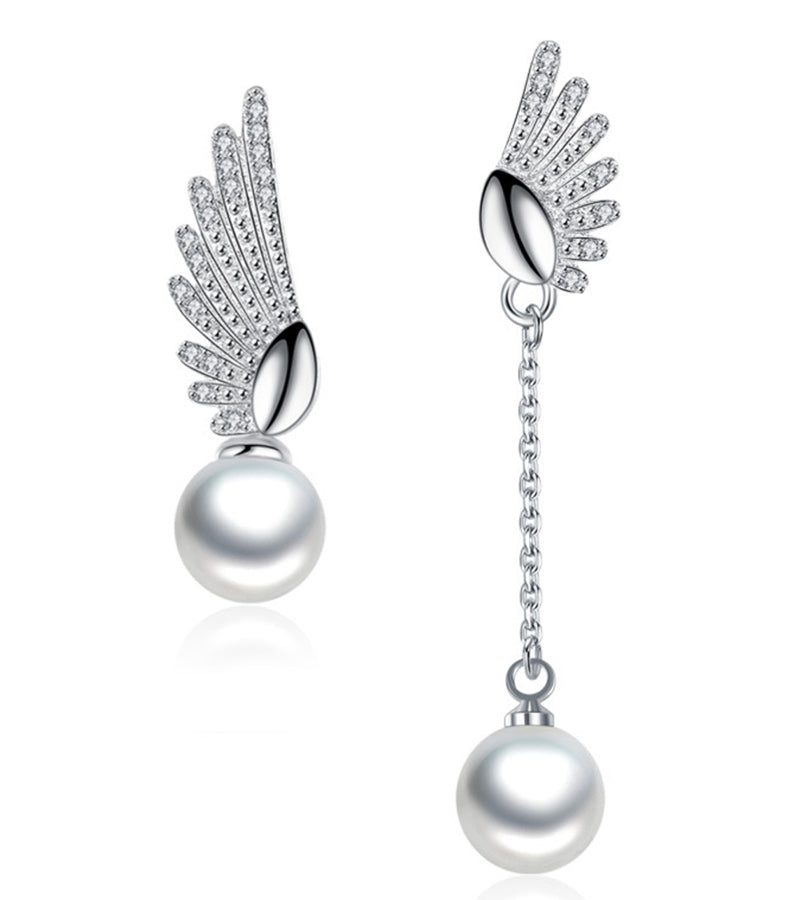 Platinum Plated Austrian Crystal White Pearl Drop Earrings
