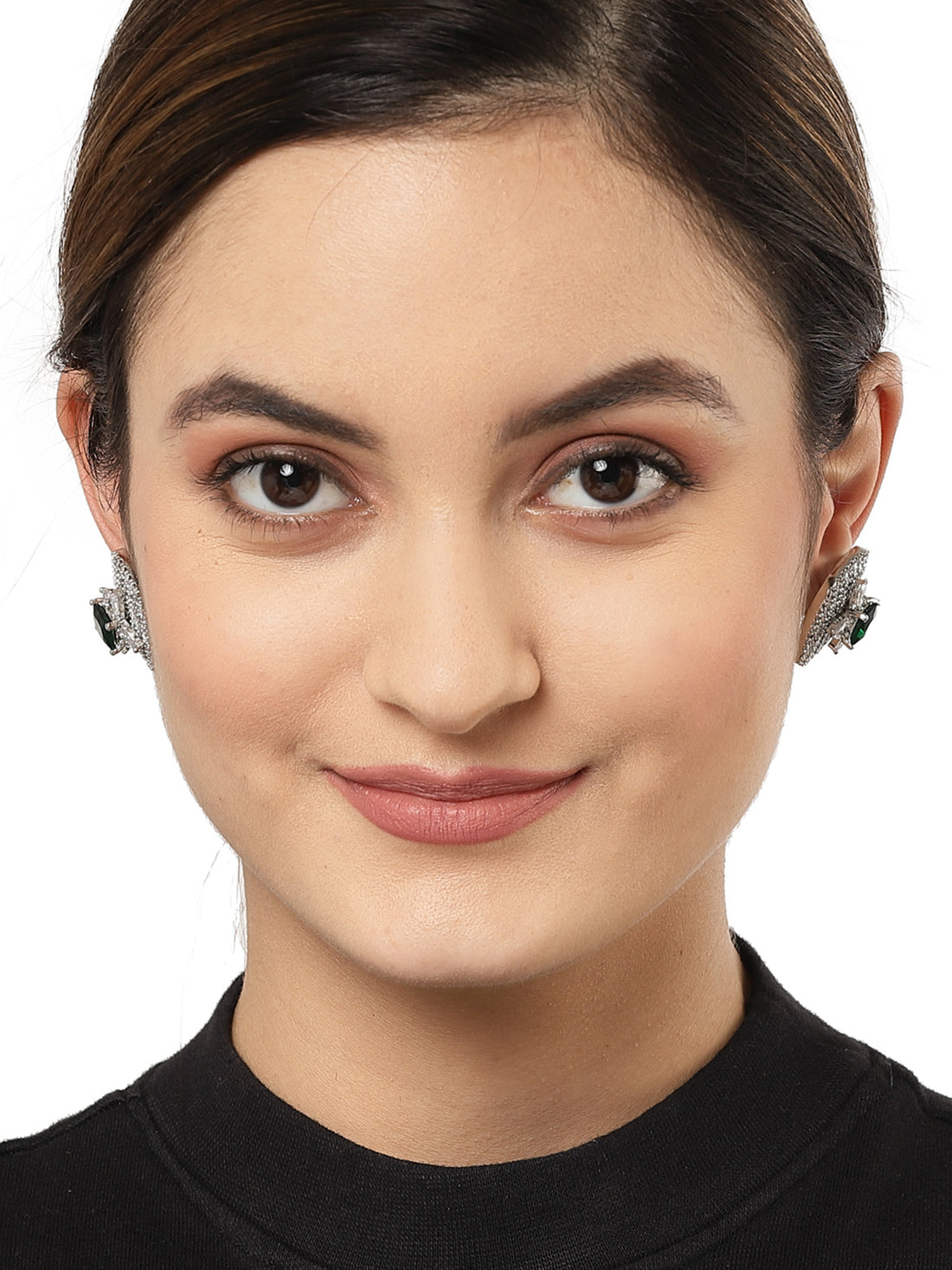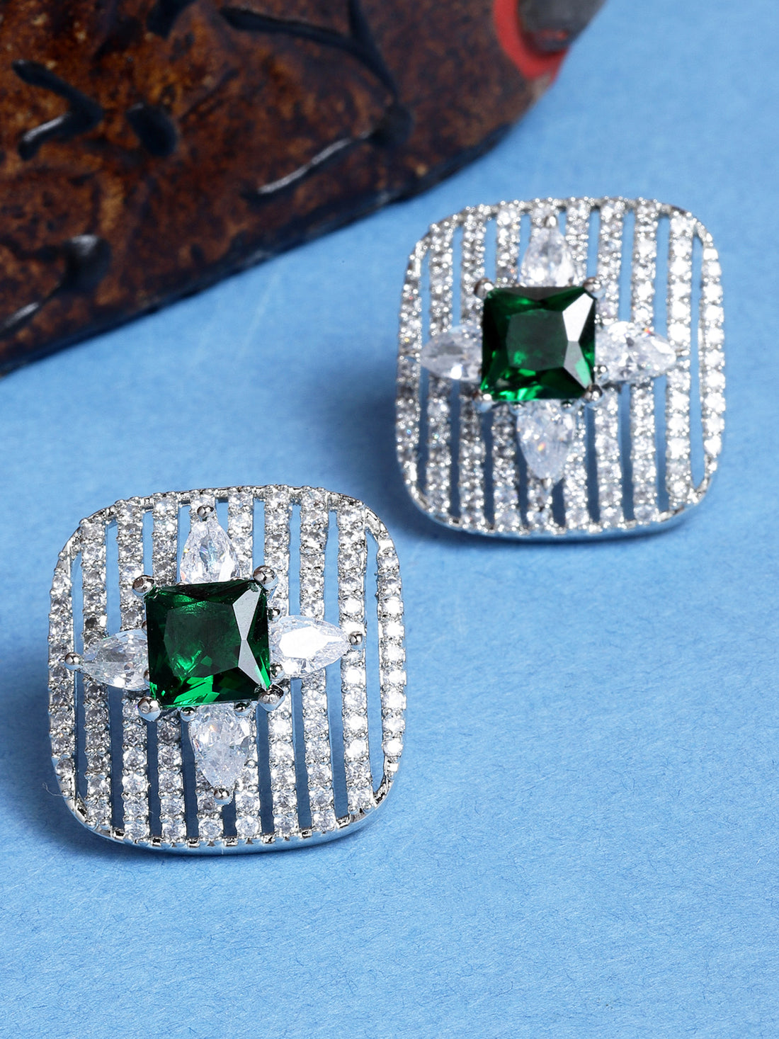 Silver Tone Green Square American Diamond Drop Earrings for Women
