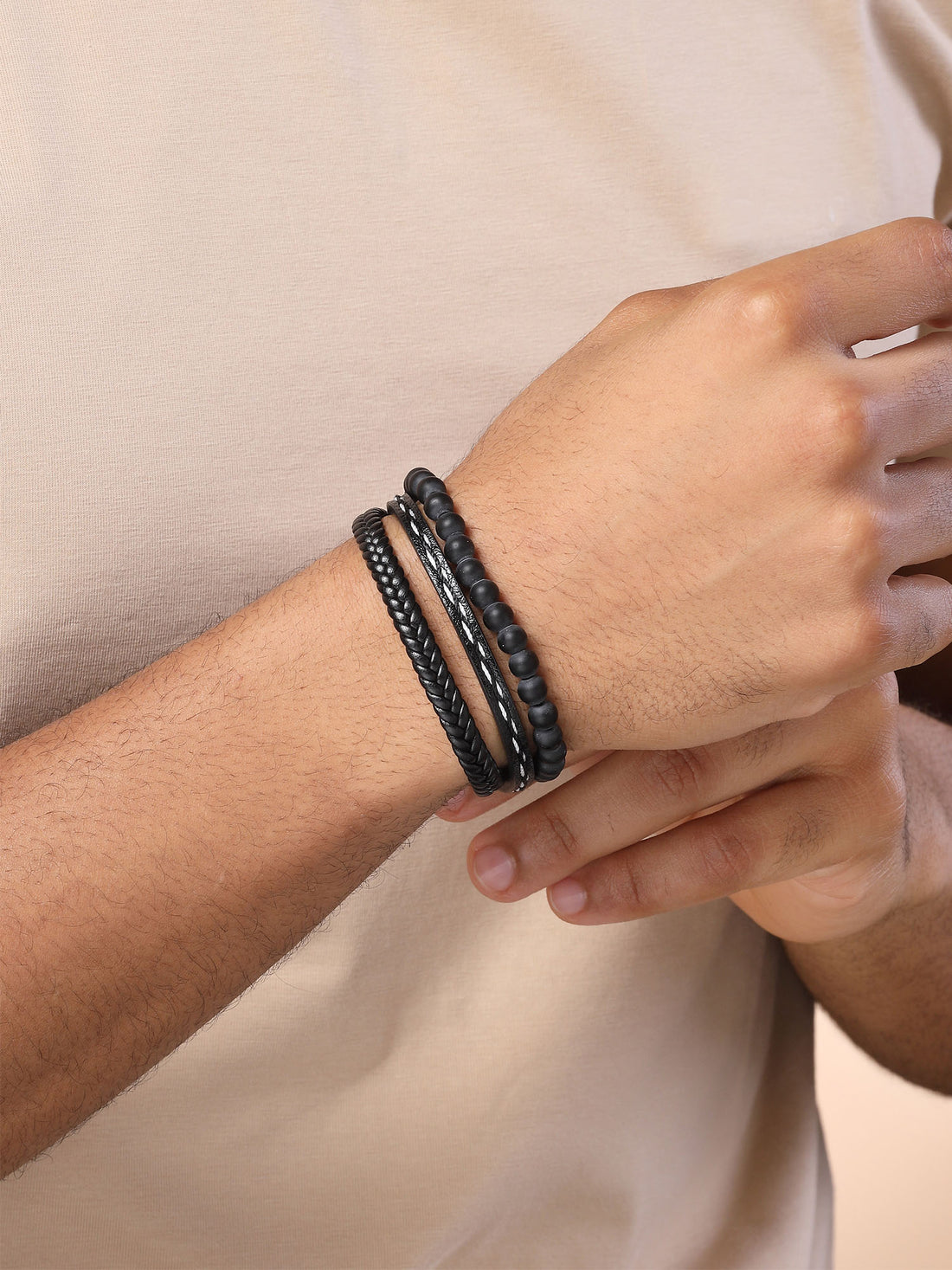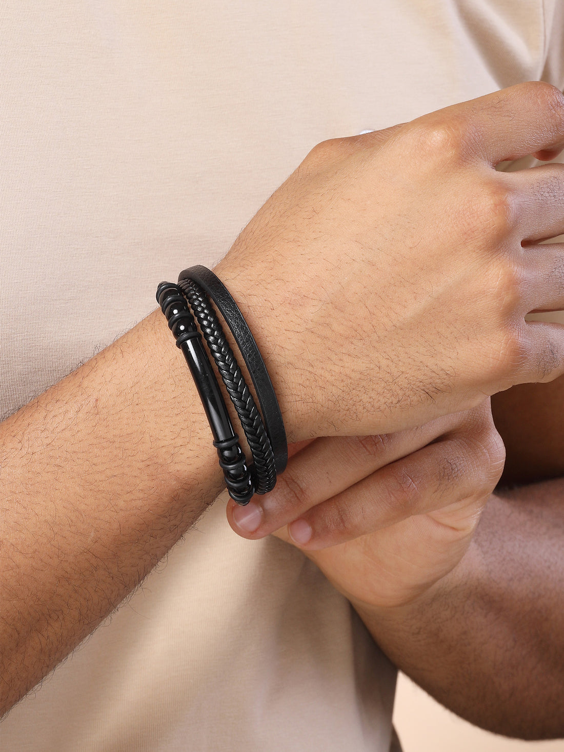 Bohey by KARATCART Men Leather Multistrand Wraparound Bracelet