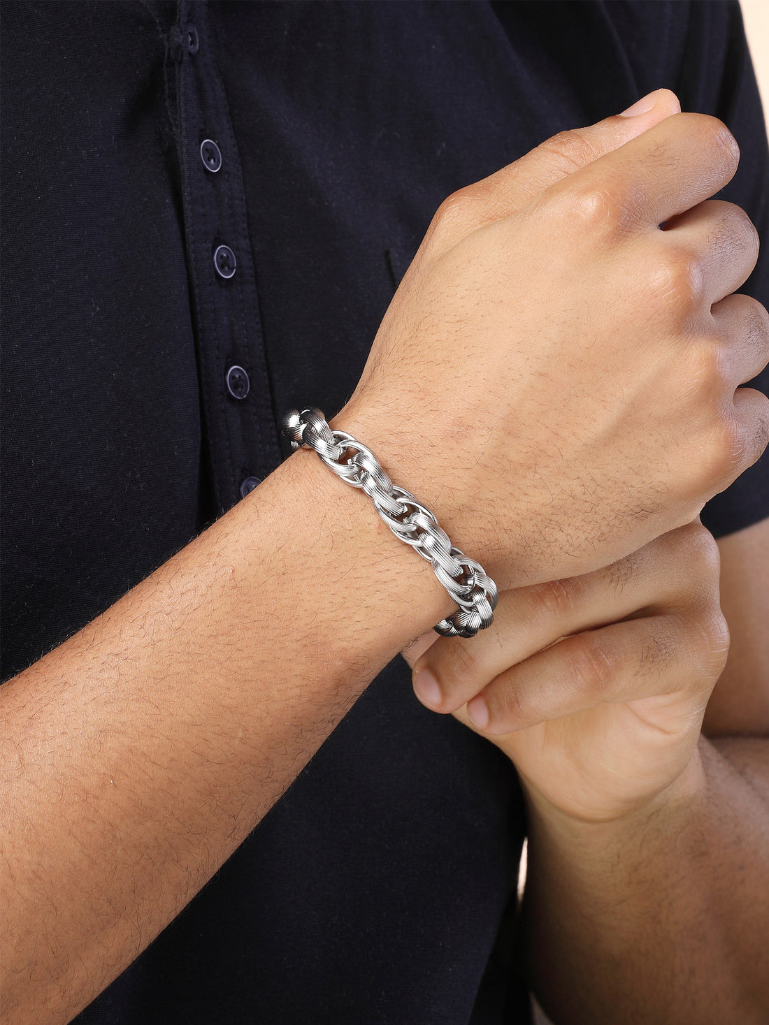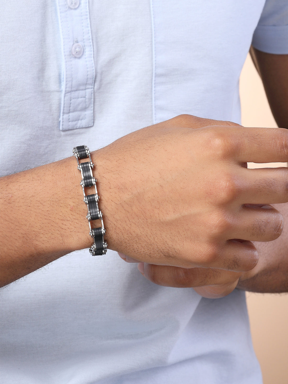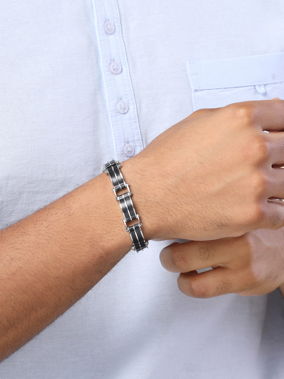 Bohey by KARATCART Black and Silver Link Bracelet for Men