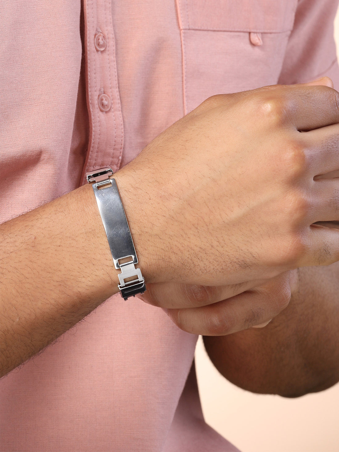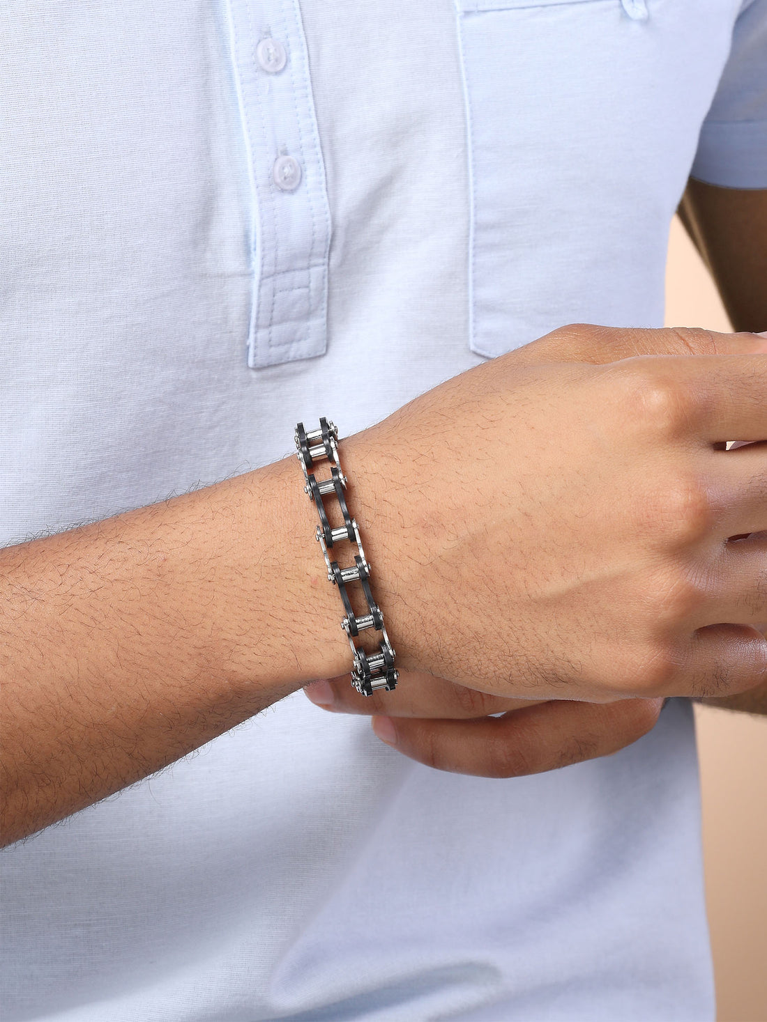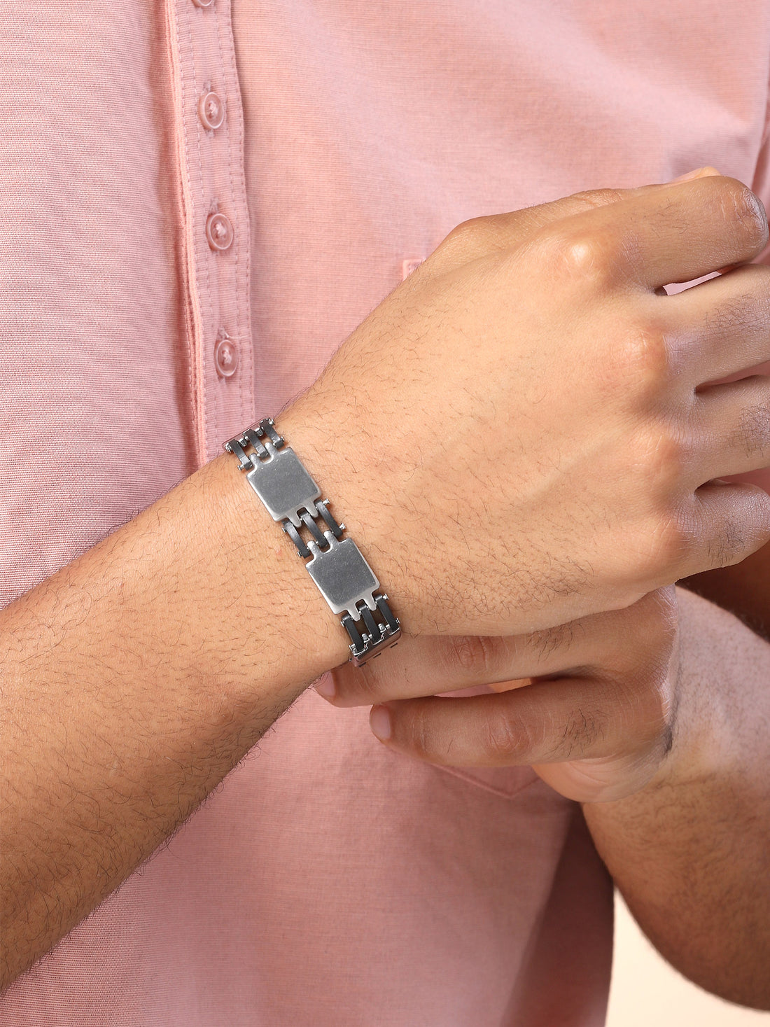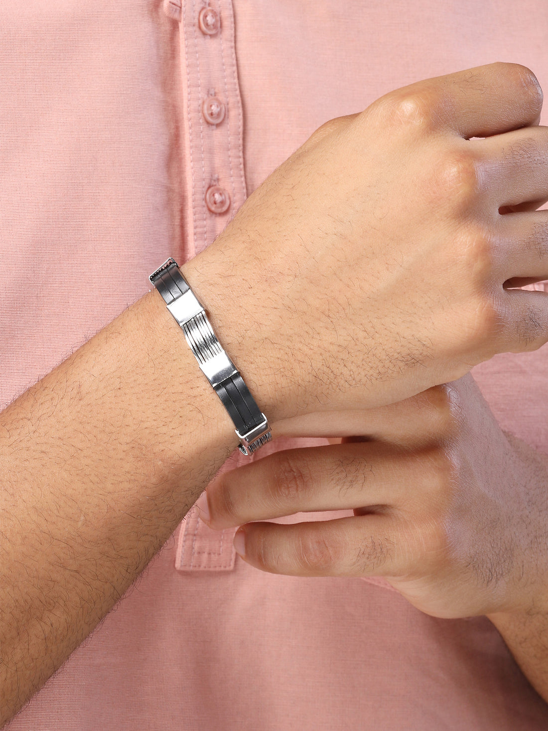 Bohey by KARATCART Black and Silver Link Bracelet for Men