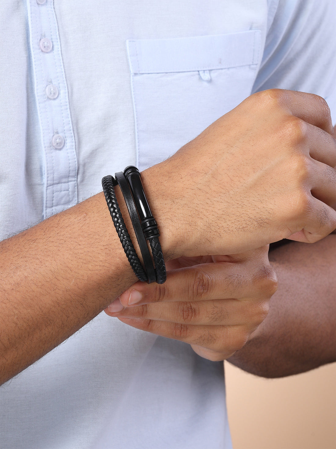 Bohey by KARATCART Men Leather Wraparound Bracelet