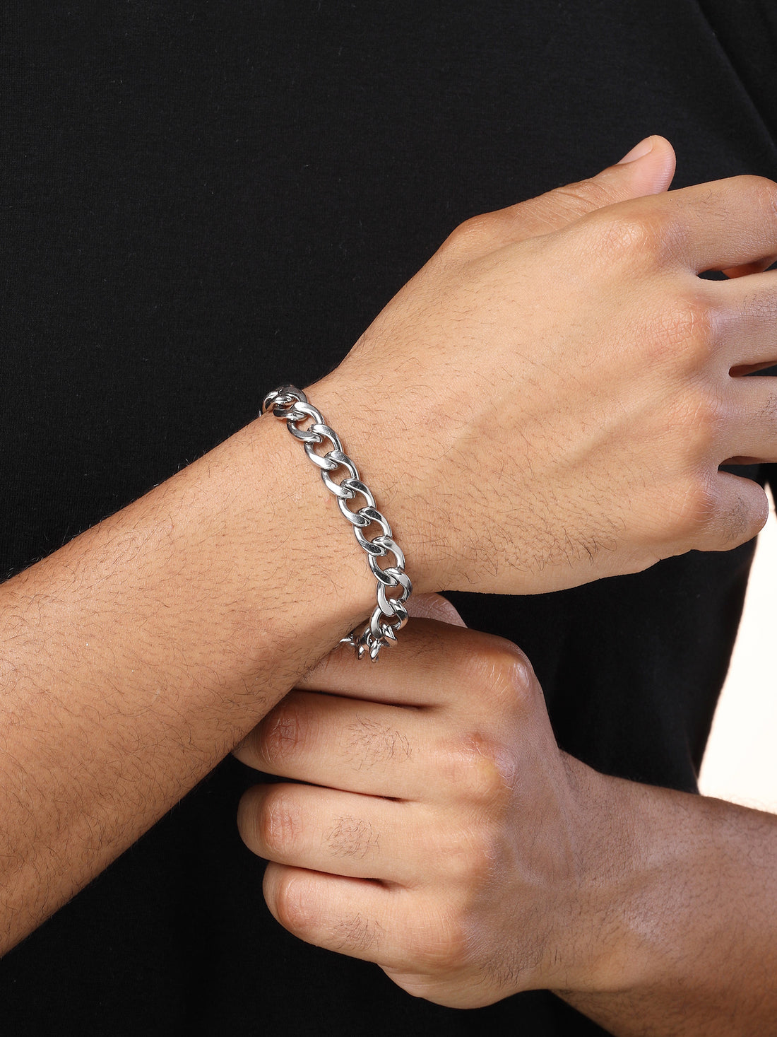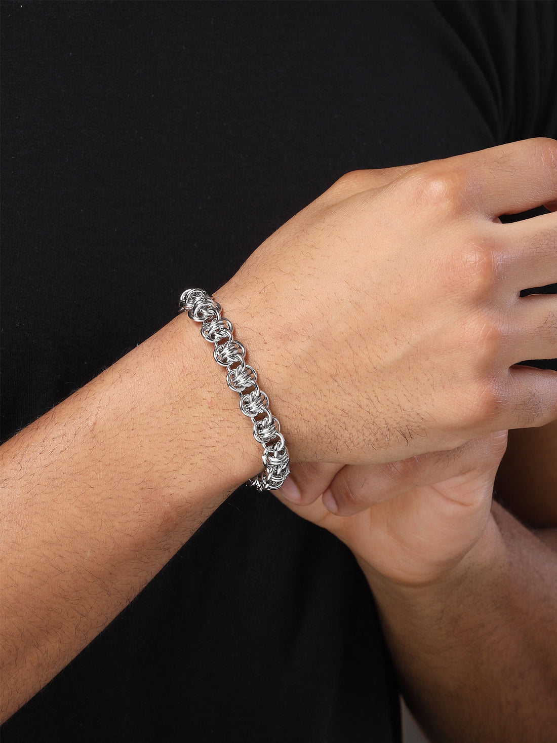 Bohey by KARATCART Silver Plated Link Chain Bracelet for Men