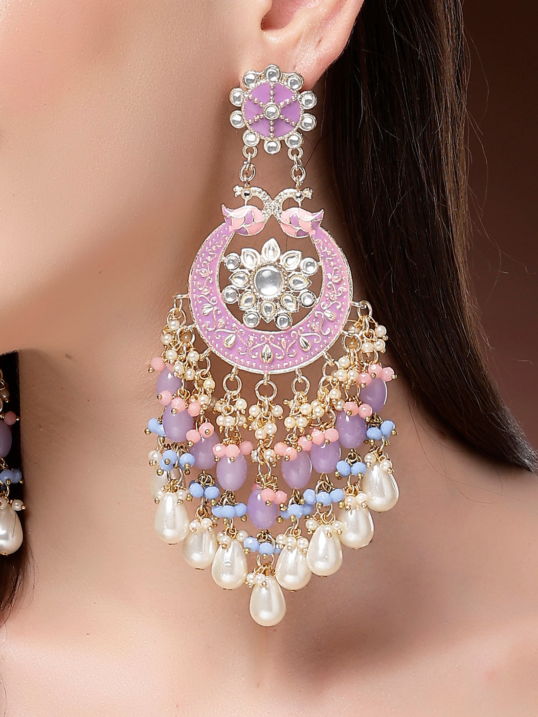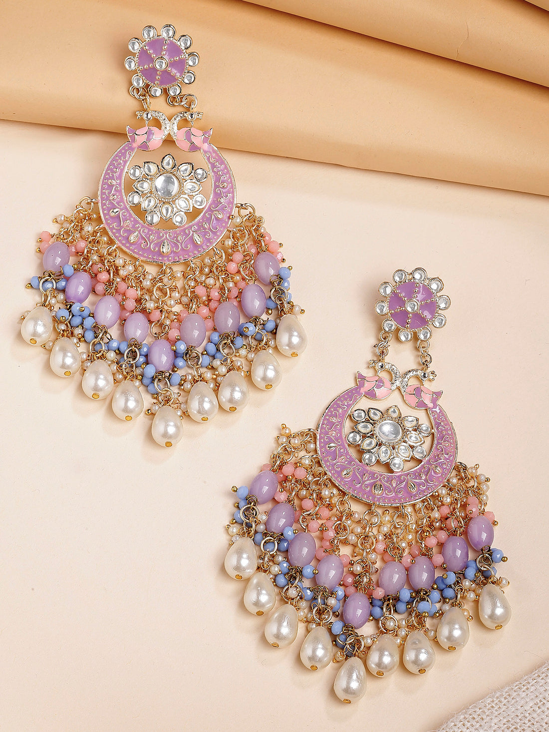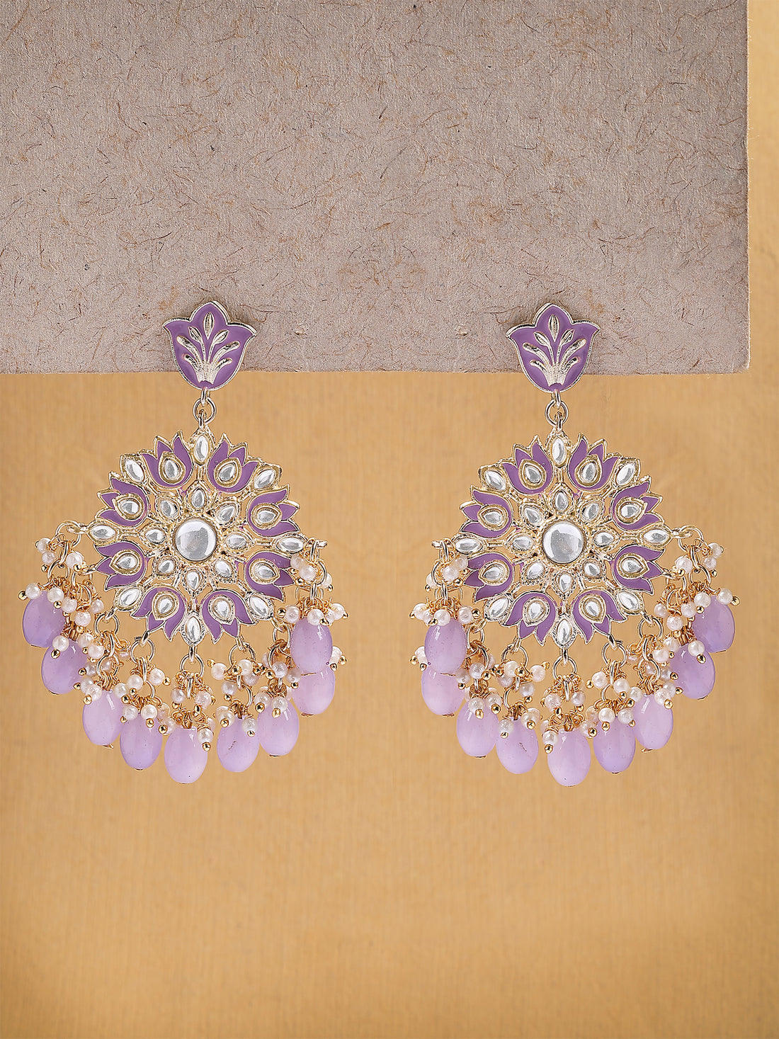 Karatcart Ethnic Purple Meenakari and Gold-Plated Kundan Dangler Earrings with Lavender Beads