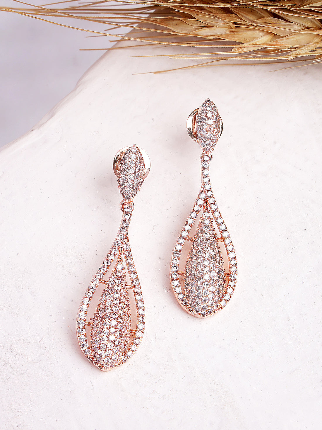 Karatcart Rose Gold Plated Teardrop American Diamond Earrings for Women