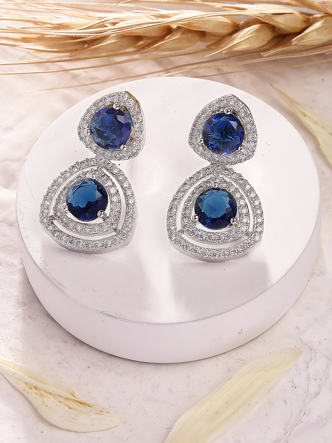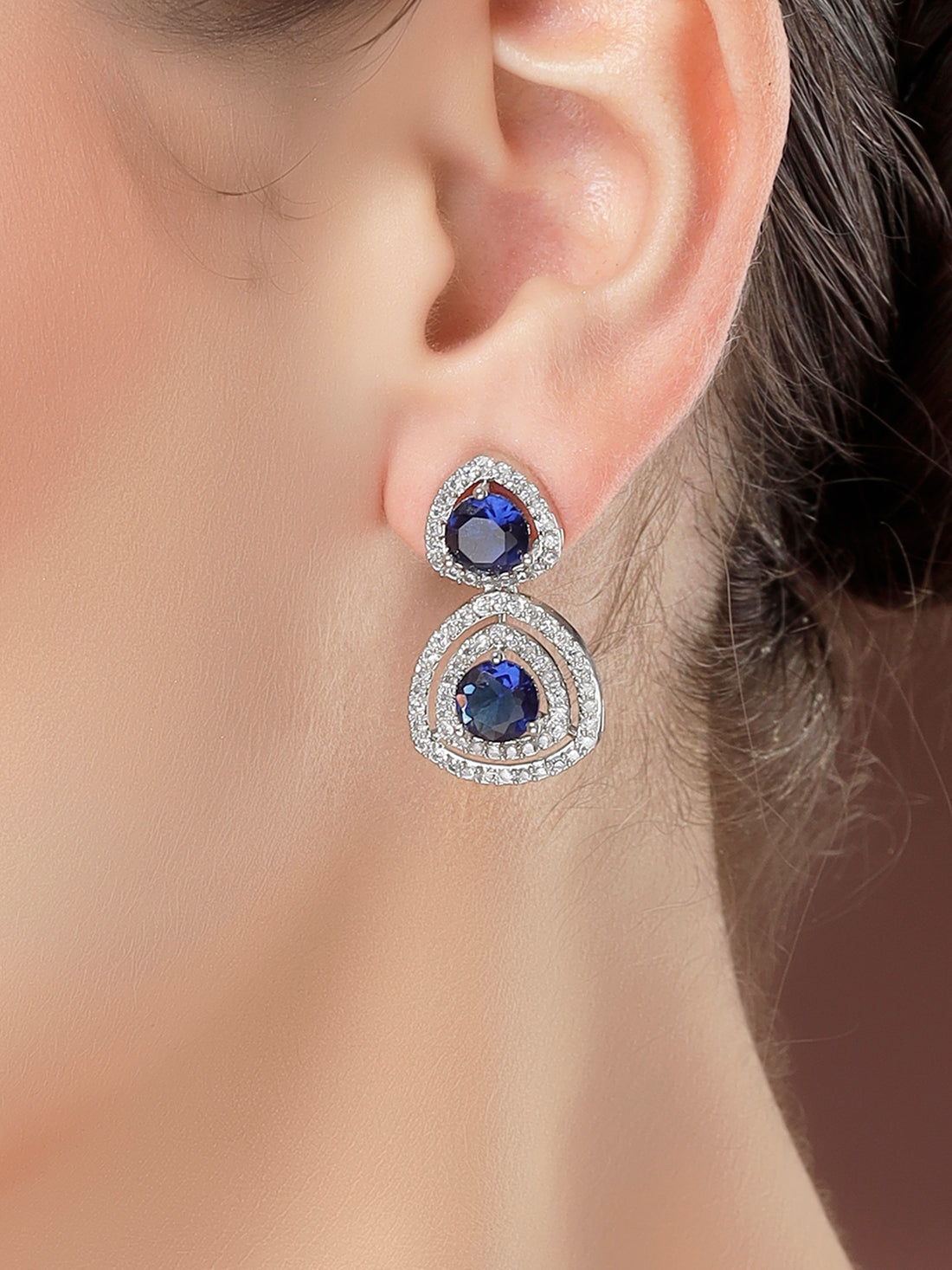 Karatcart Elegant Silver-Tone Teardrop Blue American Diamond Drop Earrings for Women