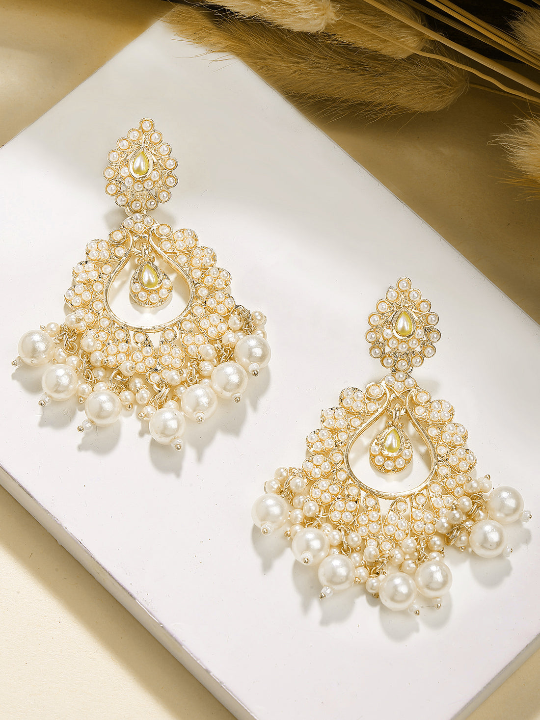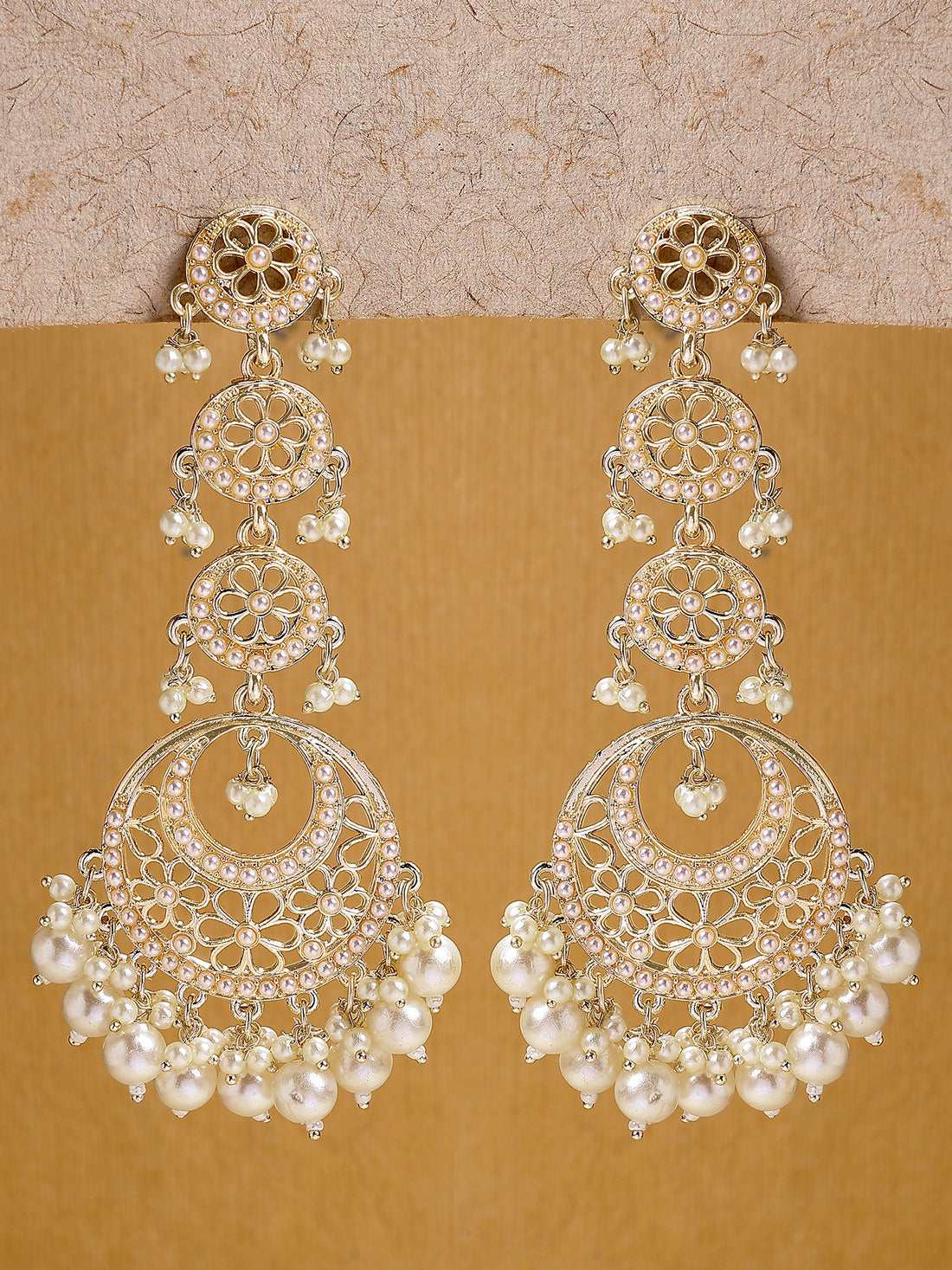 Karatcart Designer Gold-Plated Pearl-Studded Chandbali Earrings for Women