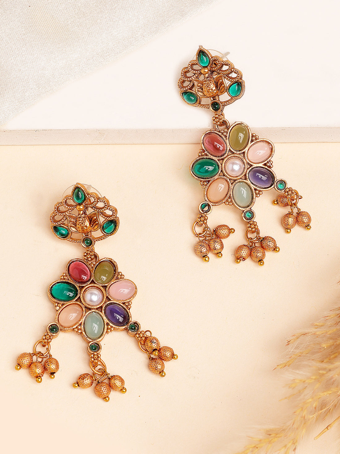 Karatcart Designer Gold-Plated Multicolor Floral Drop Earrings with Lotus Motif for Women