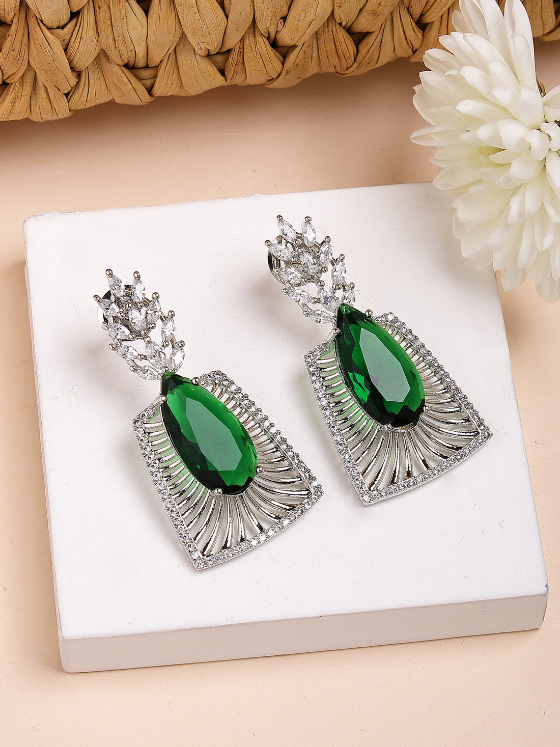Karatcart Elegant Silver-Tone Teardrop Green American Diamond Drop Earrings for Women