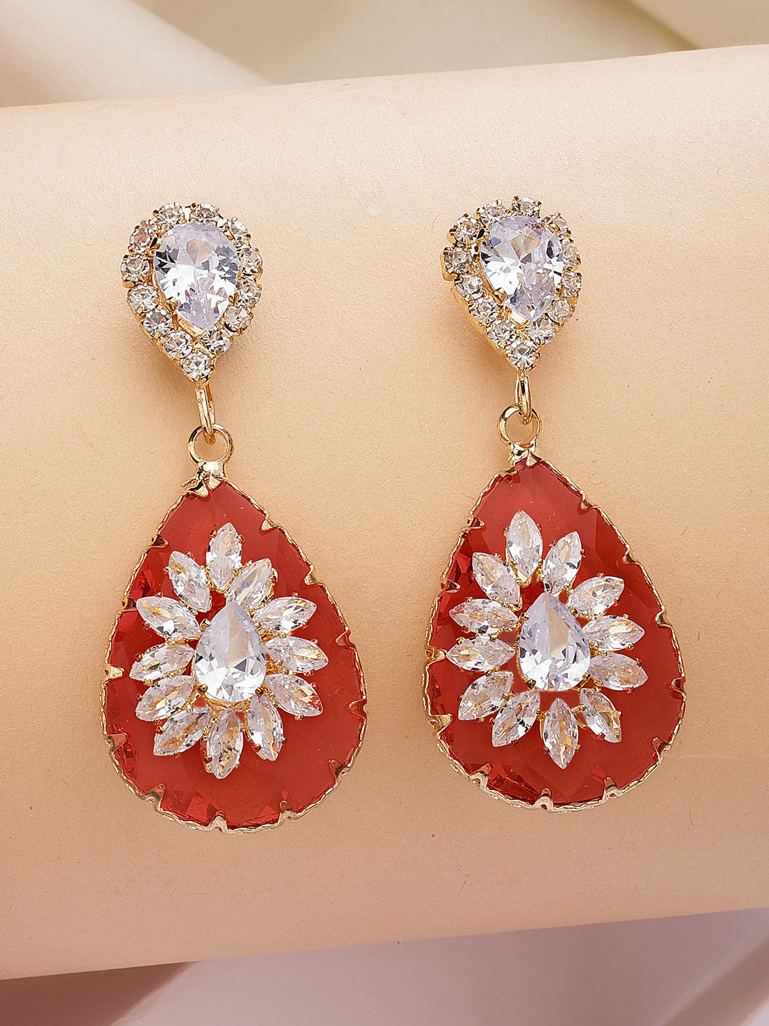 Bohey by KARATCART Gold-Plated Contemporary Red Drop Earrings for Women
