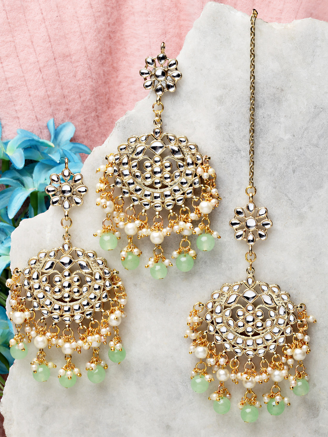 Karatcart Gold Plated Light Green Beads and Pearl Studded Kundan Chandbali Earrings for Women. It...