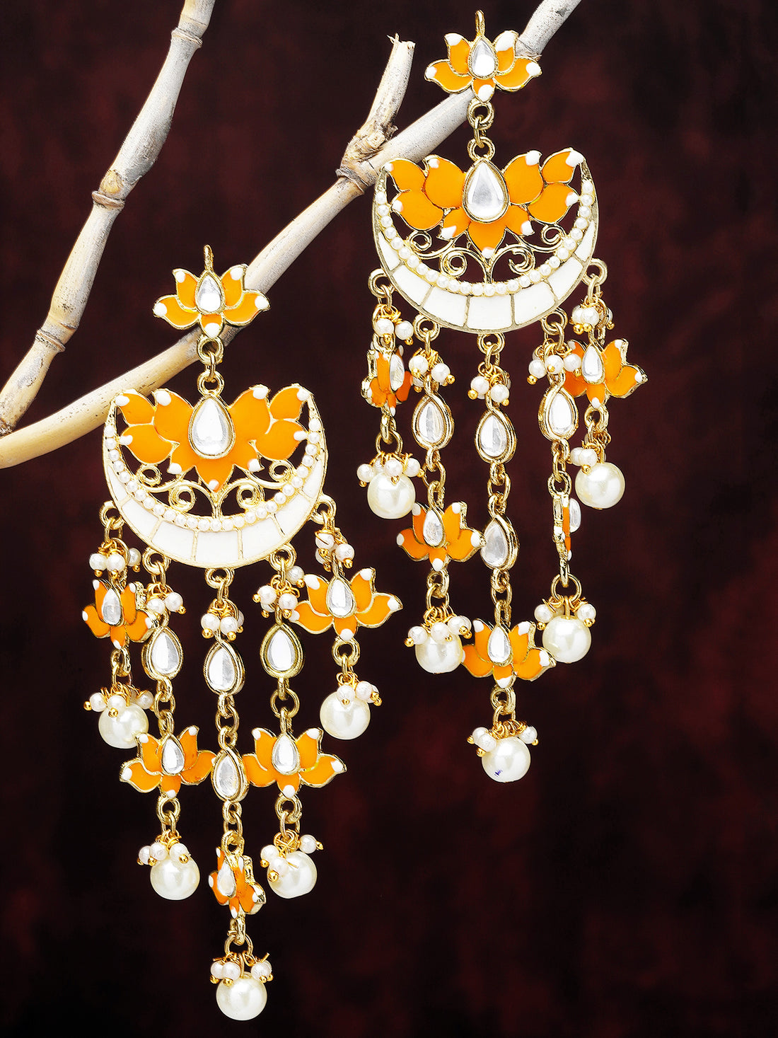 Karatcart Gold Plated Orange Meena Lotus Design Kundan Dangler Earring for Women