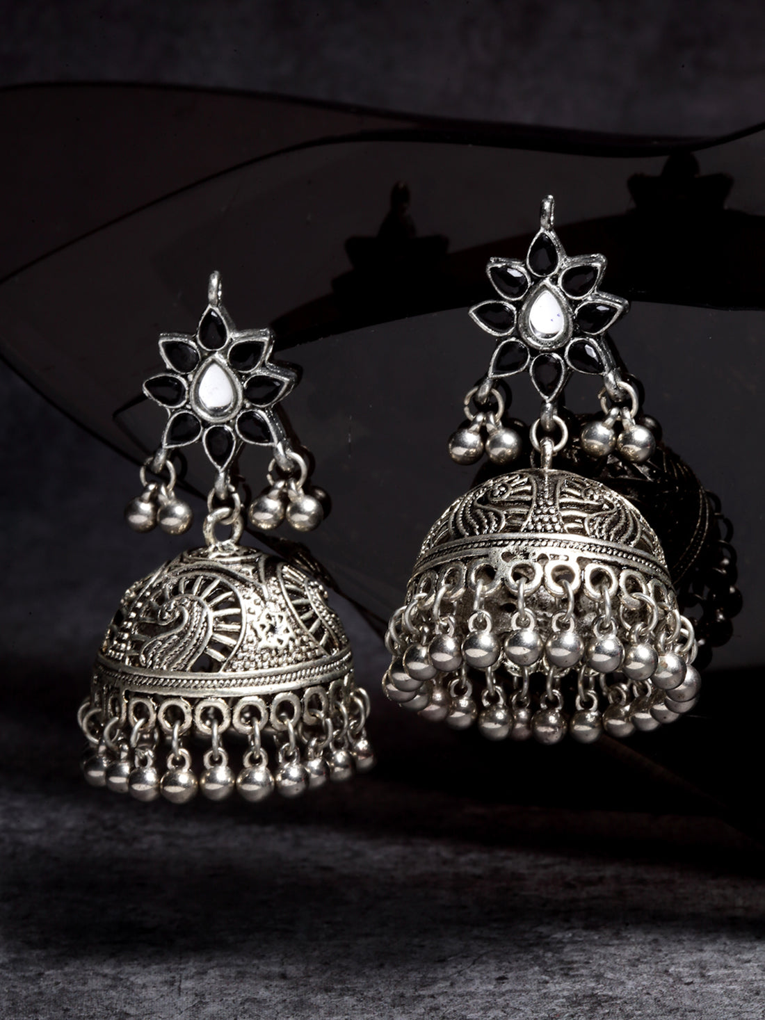 Oxidised Silver Jhumki Earrings. It is a High-Quality Oxidised Silver Jewellery Embellished with Kundan. Perfect...