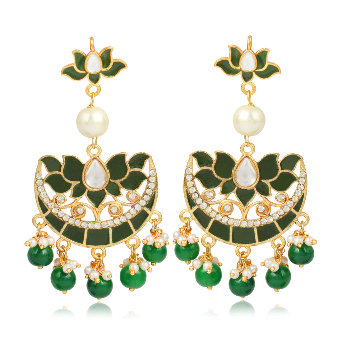 Karatcart Gold Plated Green Meena Handcrafted Kundan Jhumki Earrings for Women