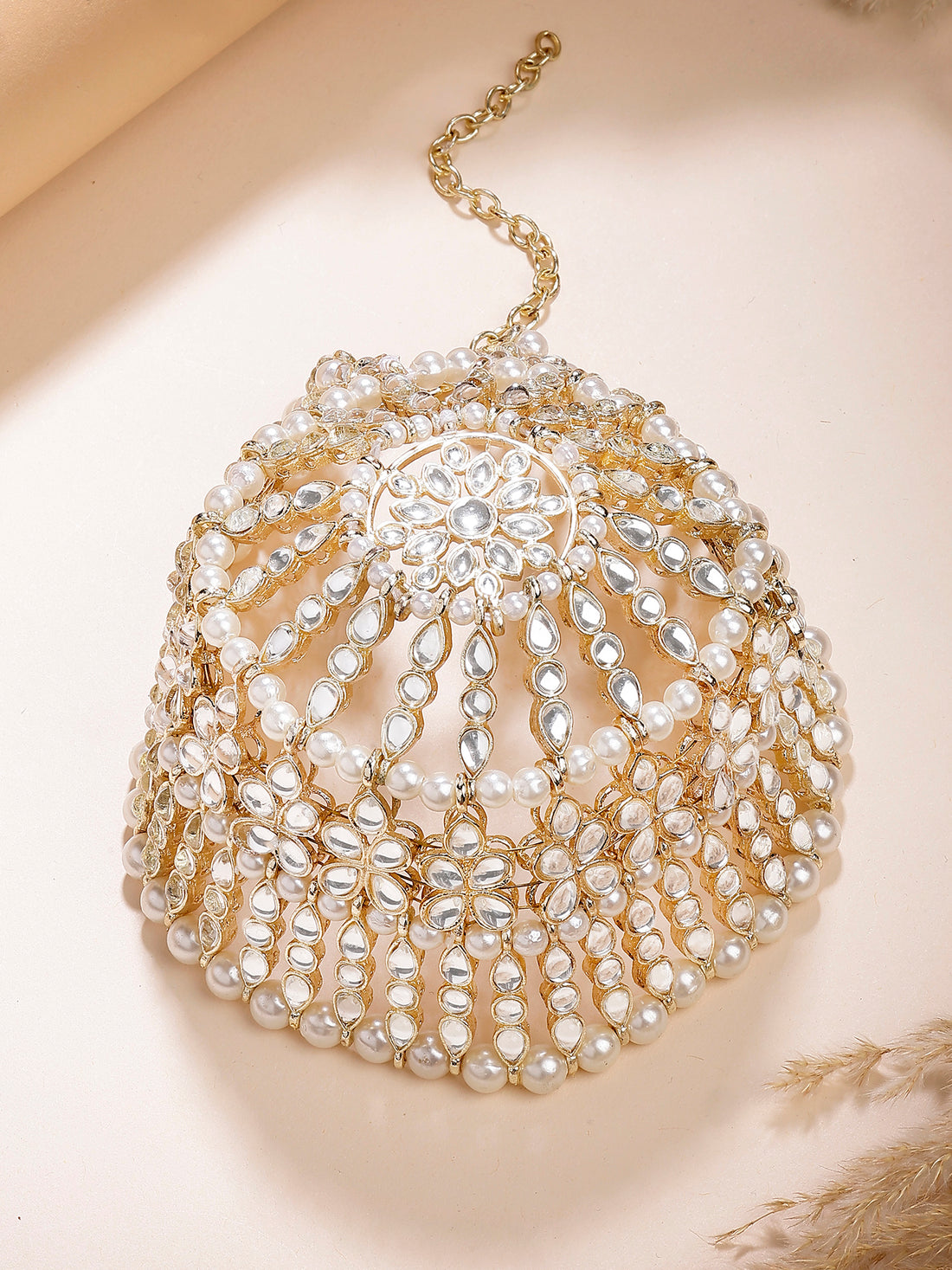 Karatcart Gold Plated Pearl and Kundan Hathphool for Women