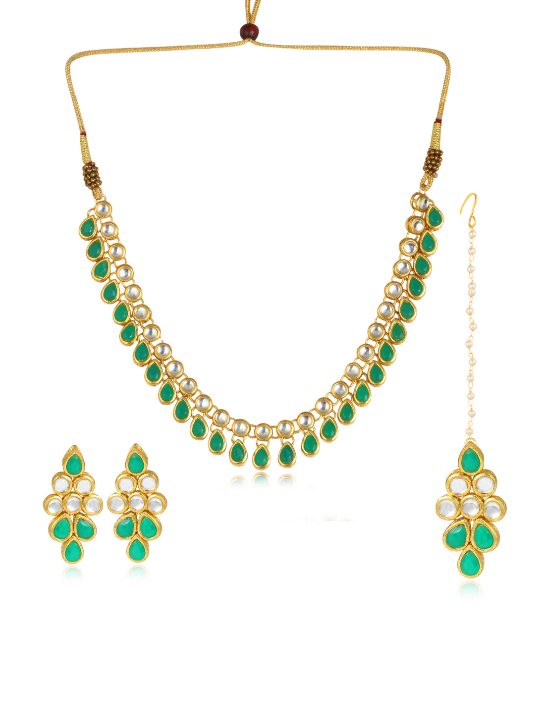 Karatcart 22K GoldPlated Green Drop Kundan Necklace Set for Women