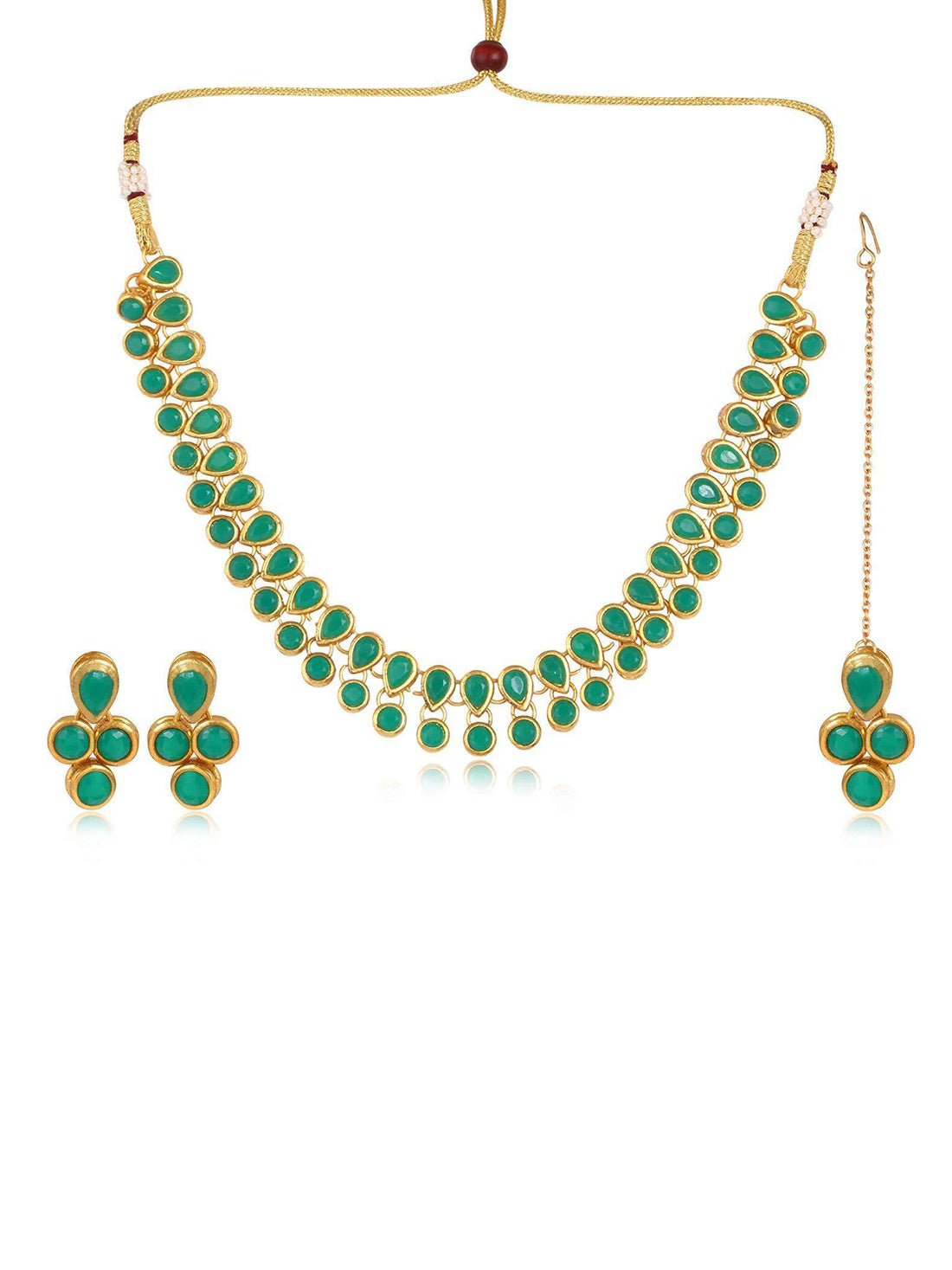 Karatcart Gold Plated Square Shape Green Beads Choker Necklace Set. It is made with high-quality...