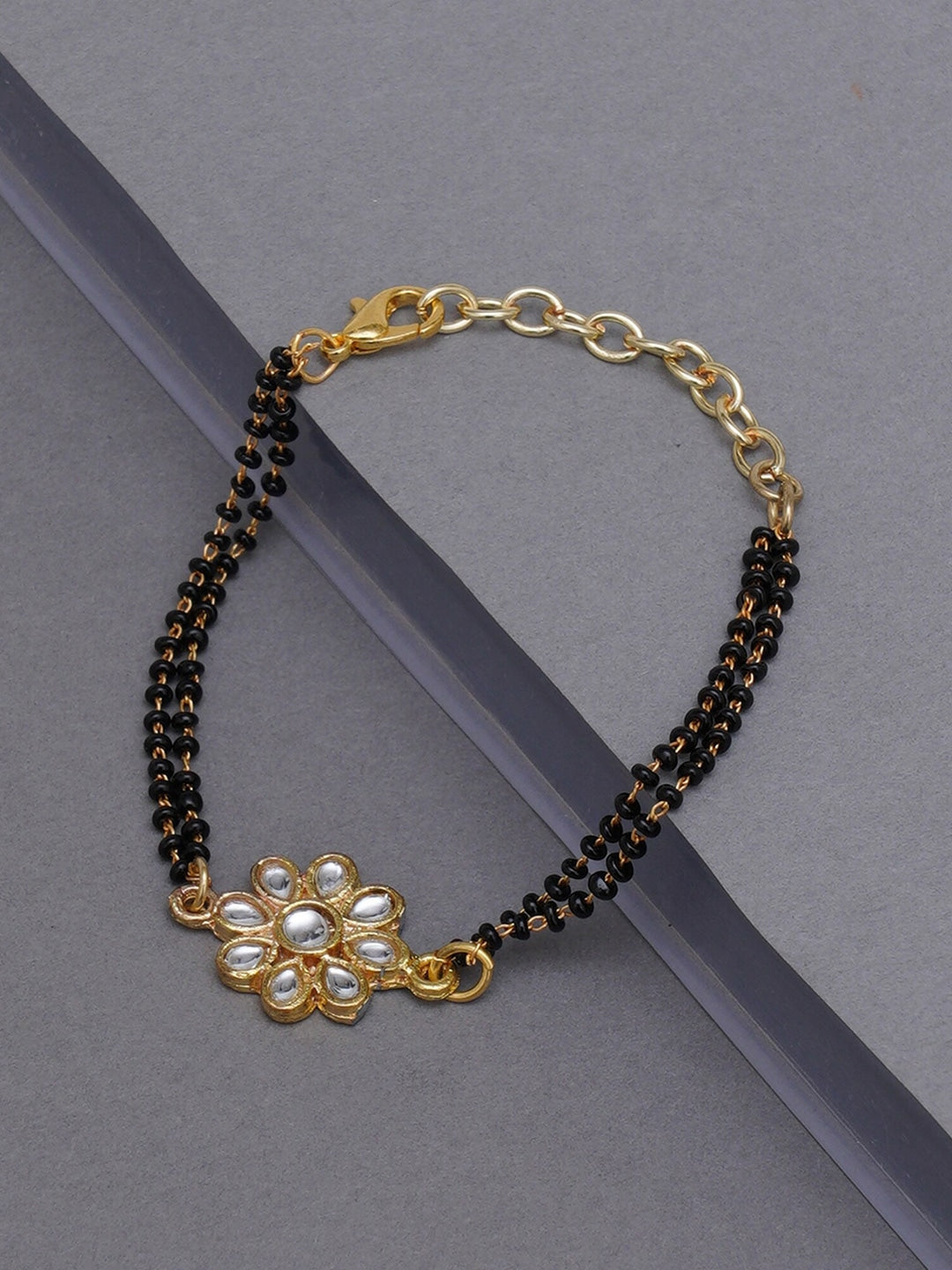 Karatcart Gold Plated Floral Shaped Kundan Mangalsutra Bracelet for Women