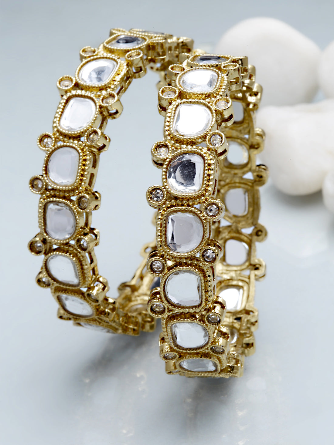 Karatcart Set of 2 Antique Kundan Gold Plated Rajwadi Bangles for Women