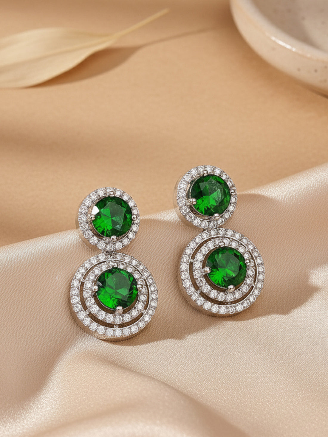 Karatcart Elegant Silver-Tone Round Green American Diamond Drop Earrings for Women